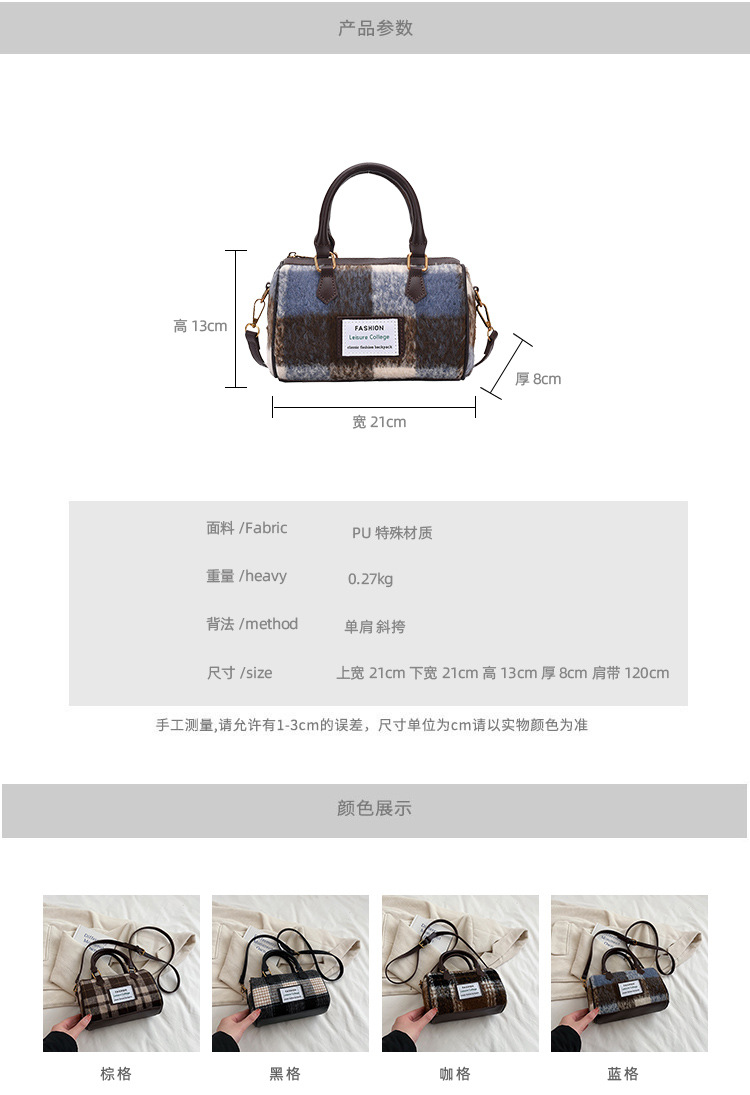 어린이 가방 2025년 봄 패션 휴대용 체크무늬 핸드백 숄더백 크로스백 출퇴근용 보스턴백스토어 가기