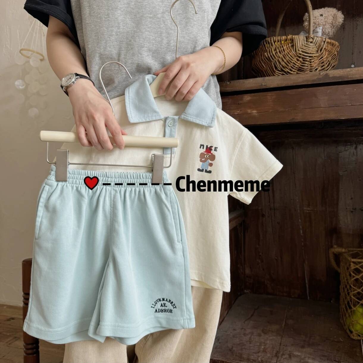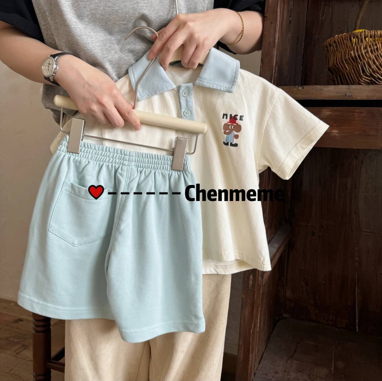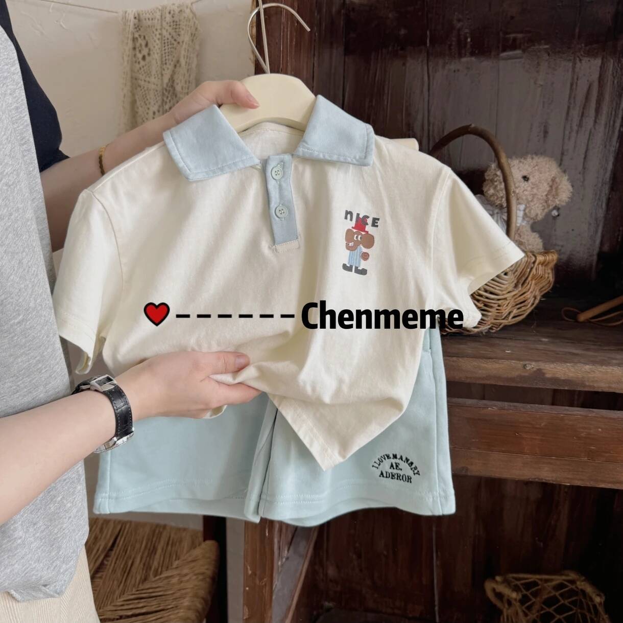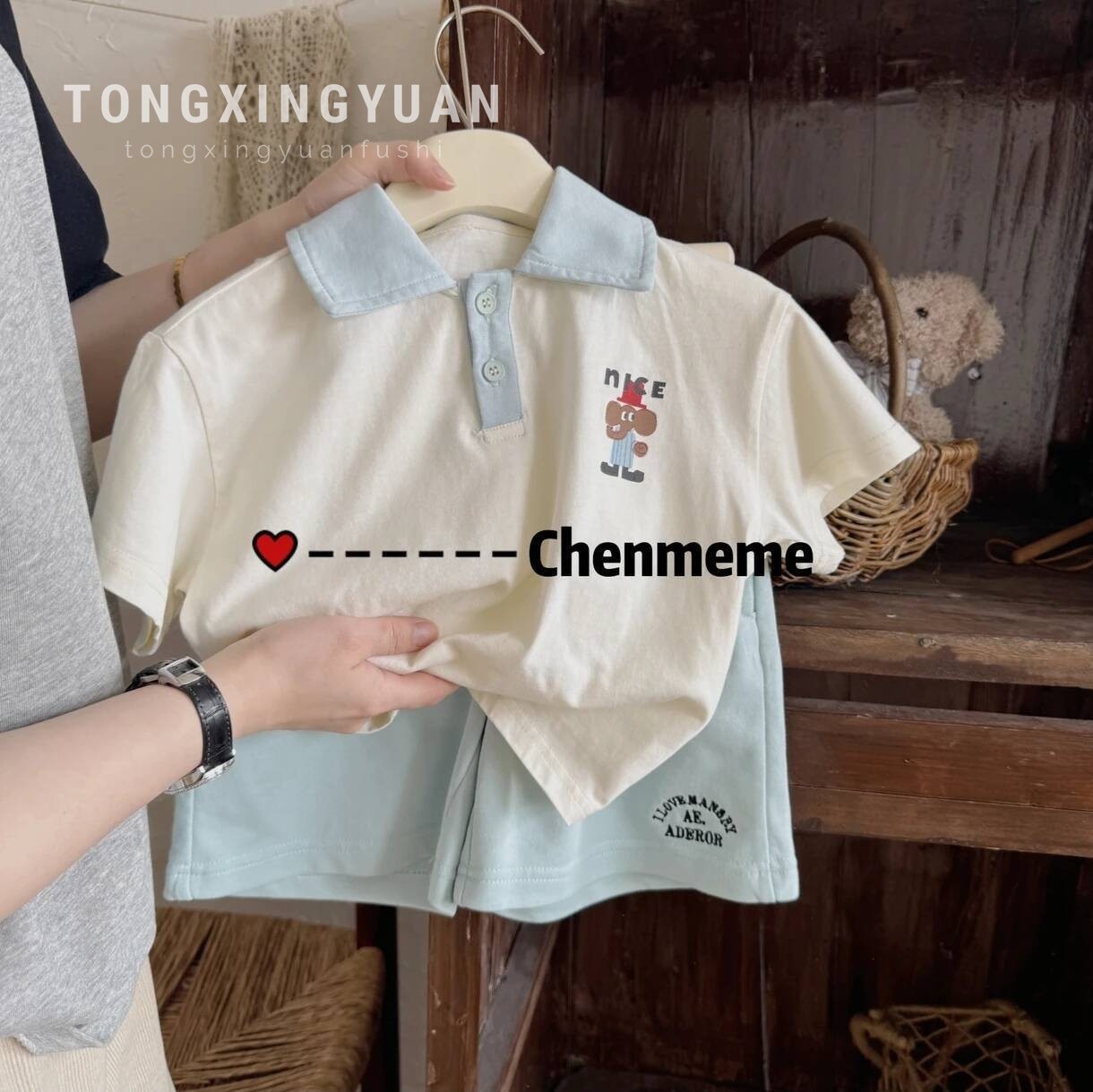 어린이 반팔 세트 소녀 여름 통기성 조수 아기 만화 POLO 셔츠 반바지 투피스 얇은 도매스토어 가기