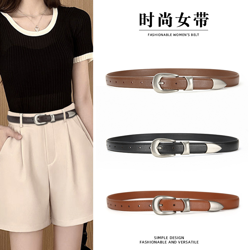 여성 벨트 레트로 하이 엔드 블랙 벨트 패션 올 매치 메탈 레트로 실버 버클 장식 세트 벨트 생성스토어 가기