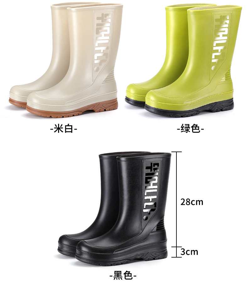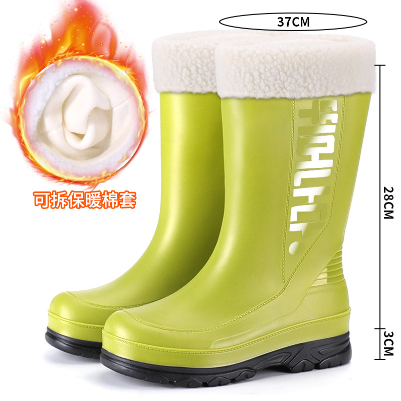 겨울 여성의 면화 장화 중간 튜브 방수 미끄럼 방지 따뜻한 편안한 탈착식 코튼 커버 레인 데이 외부 착용 고무 신발