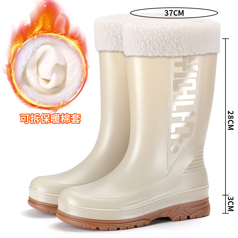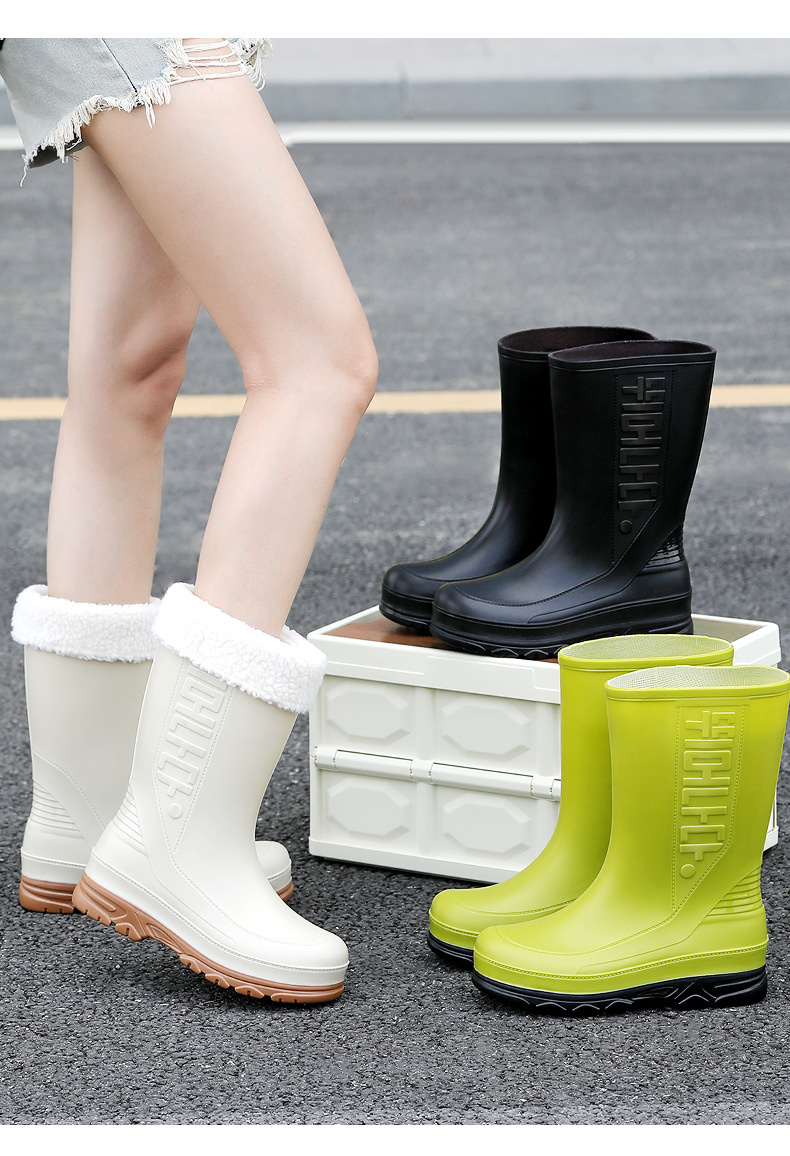겨울 여성의 면화 장화 중간 튜브 방수 미끄럼 방지 따뜻한 편안한 탈착식 코튼 커버 레인 데이 외부 착용 고무 신발스토어 가기