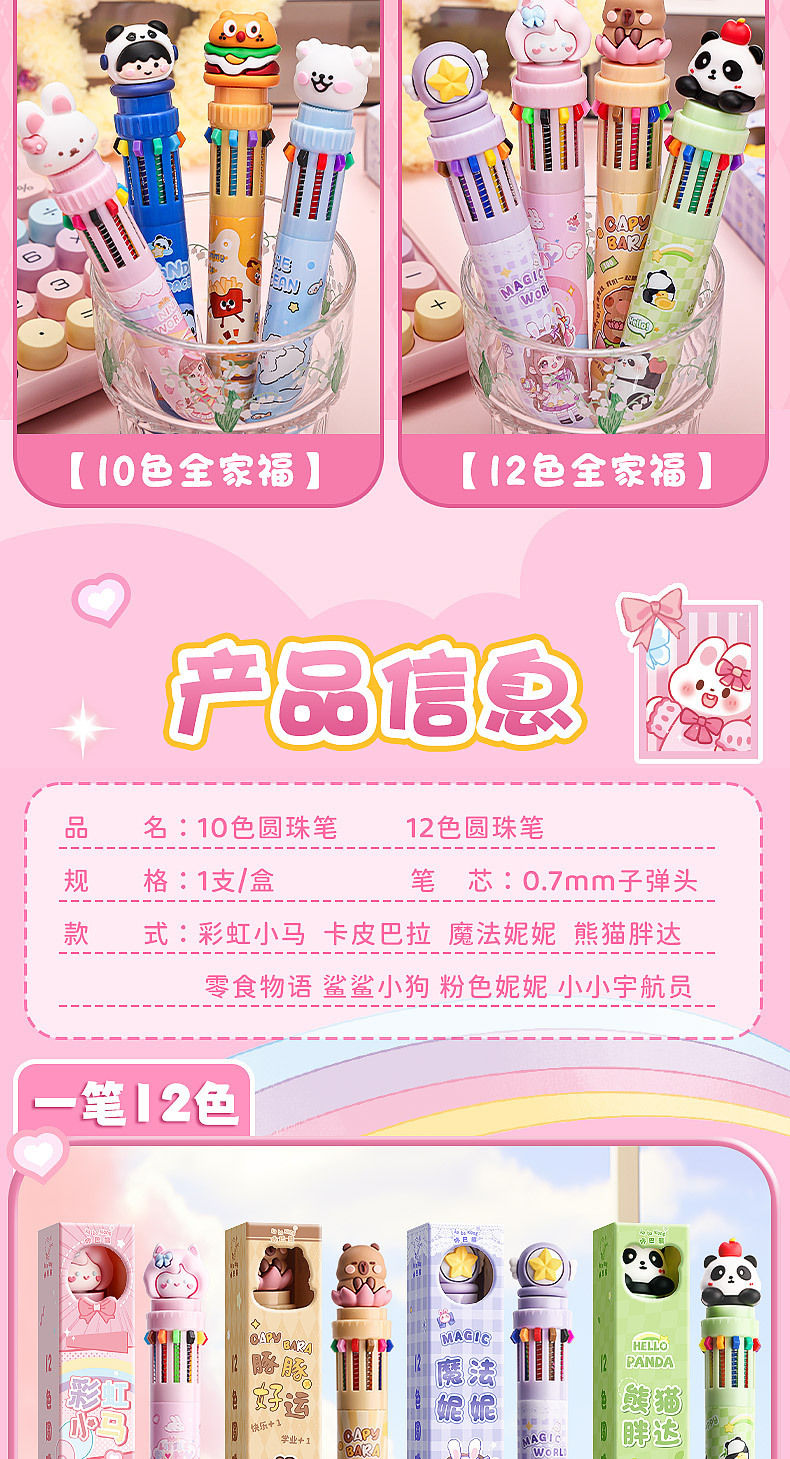 Ka Ba Bear 프레스 멀티 컬러 10 색 볼펜 창조적 인 학생 멀티 컬러 볼펜 만화 귀여운 높은 값 인