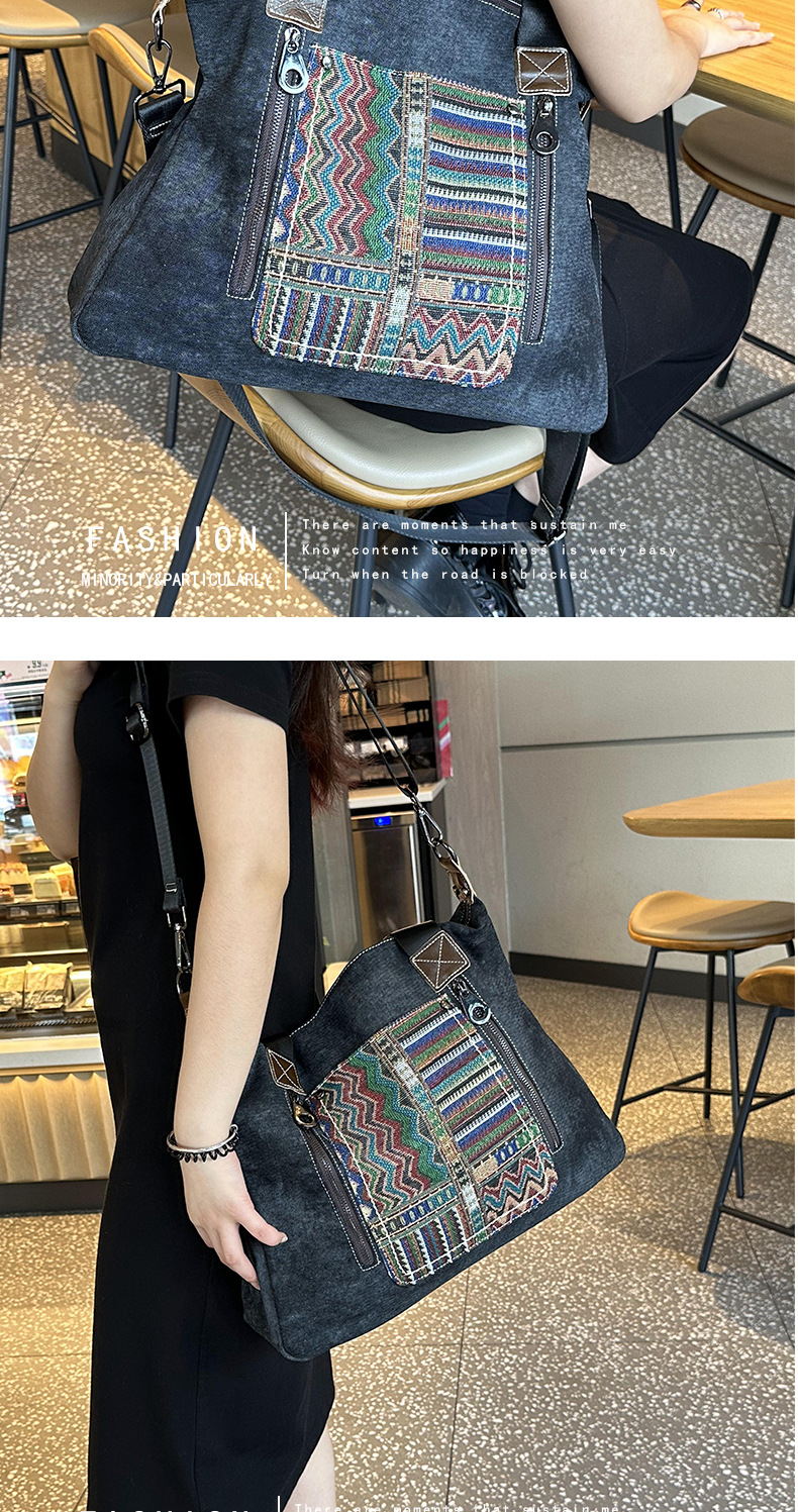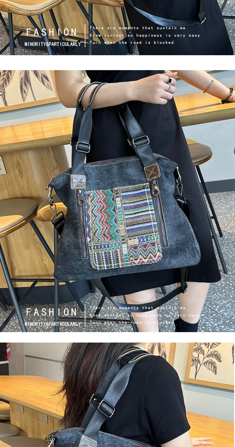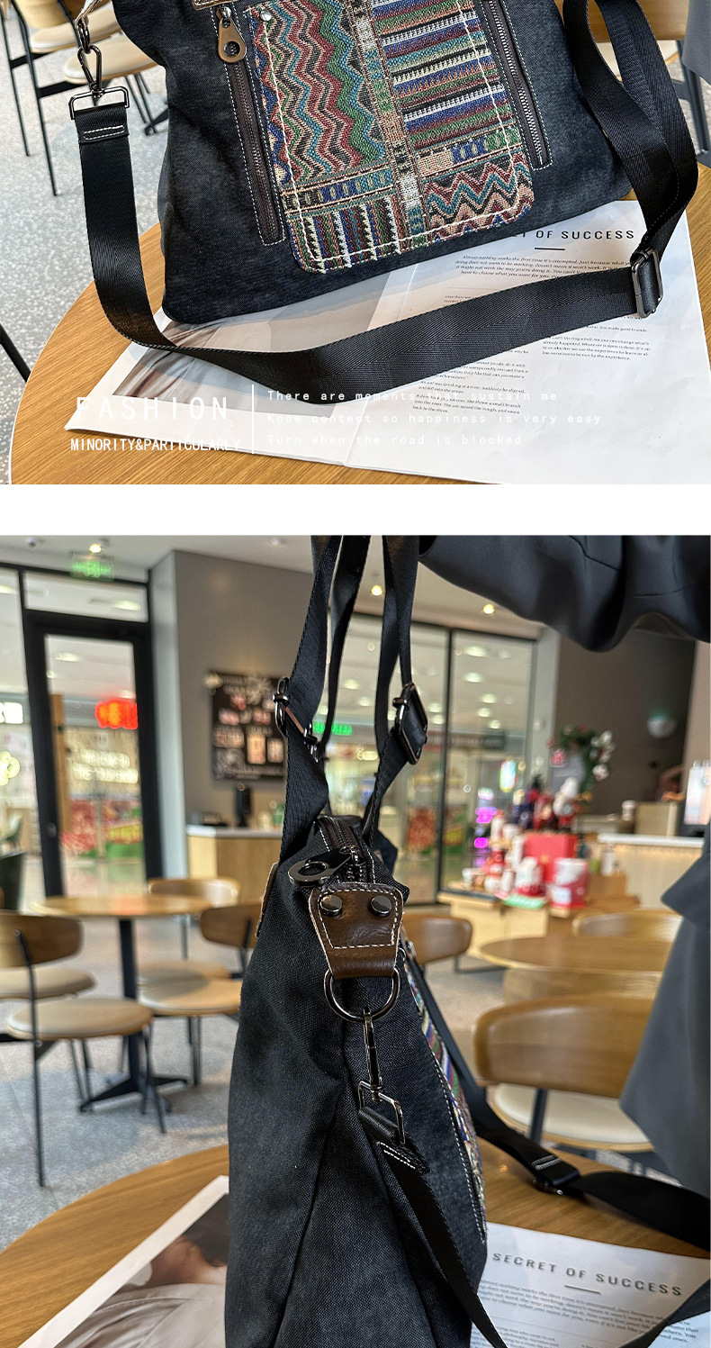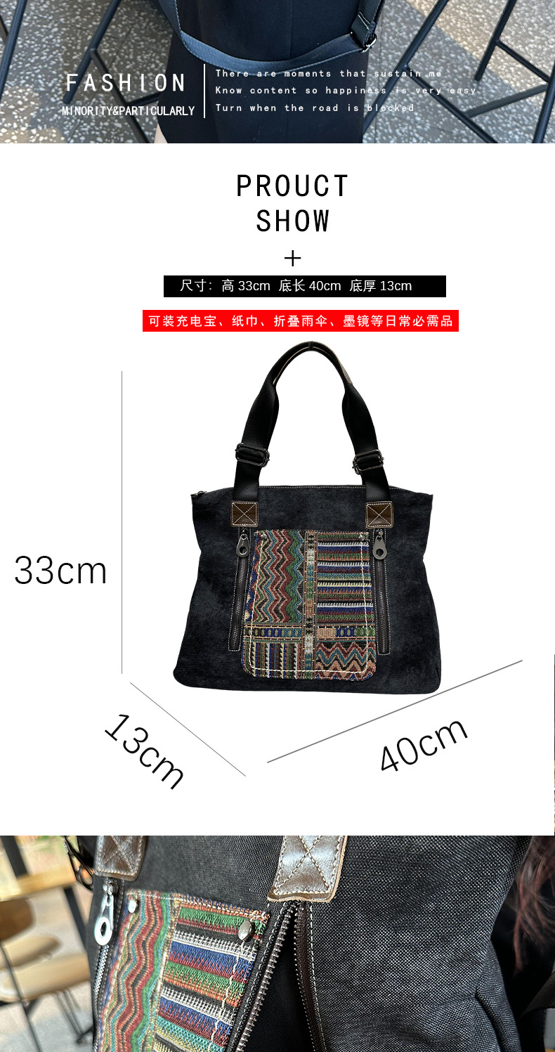 2025 새로운 캔버스 대용량 핸드백 자수 민족 스타일 숄더 백 여성 유행 여성 가방 유럽과 미국의 가방스토어 가기
