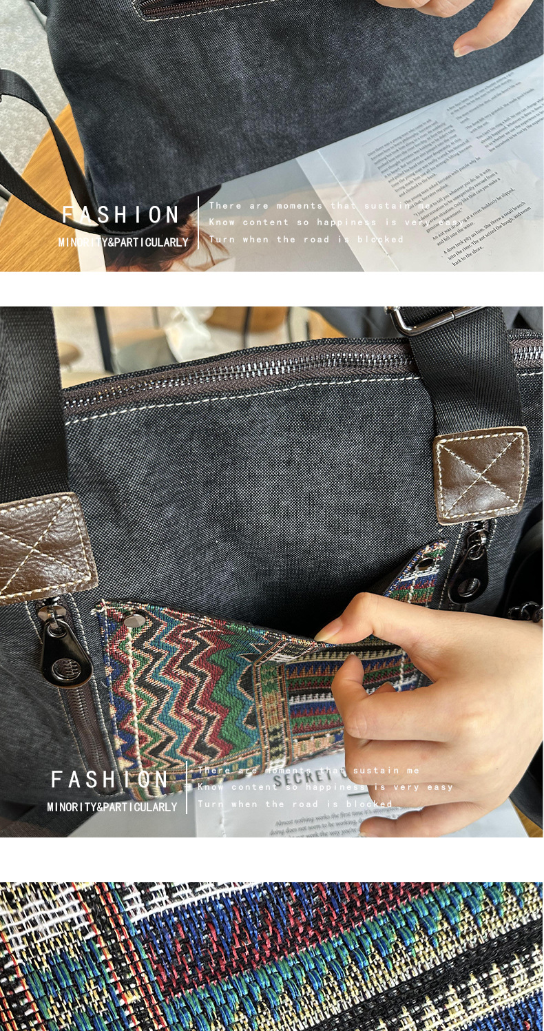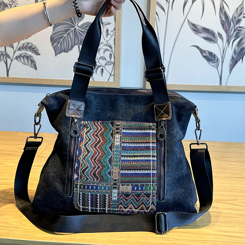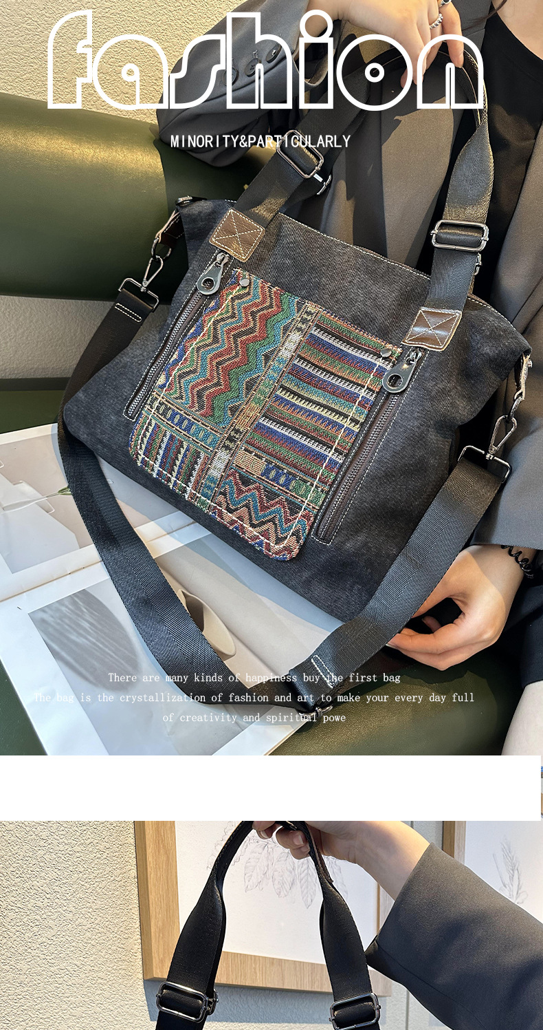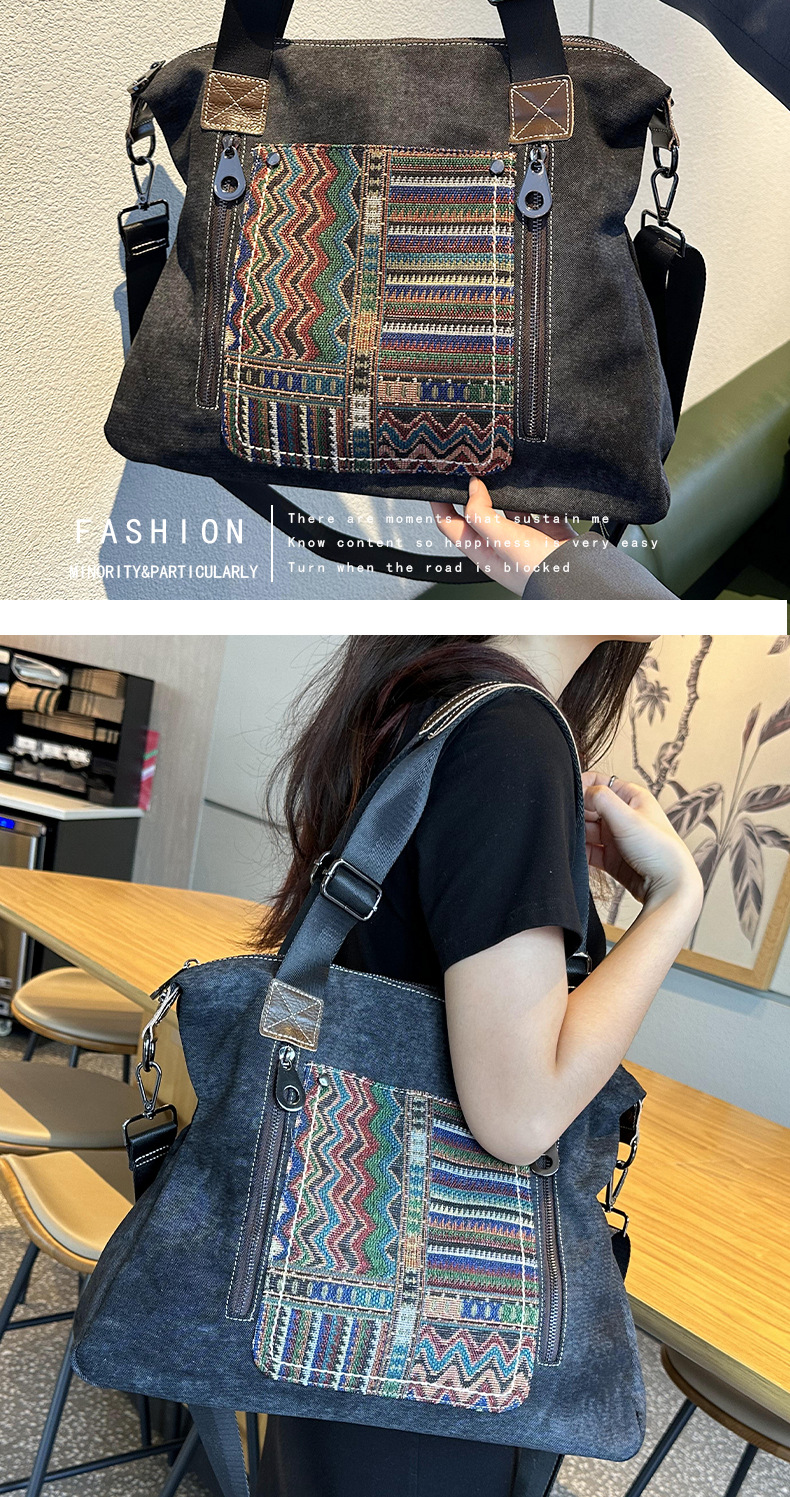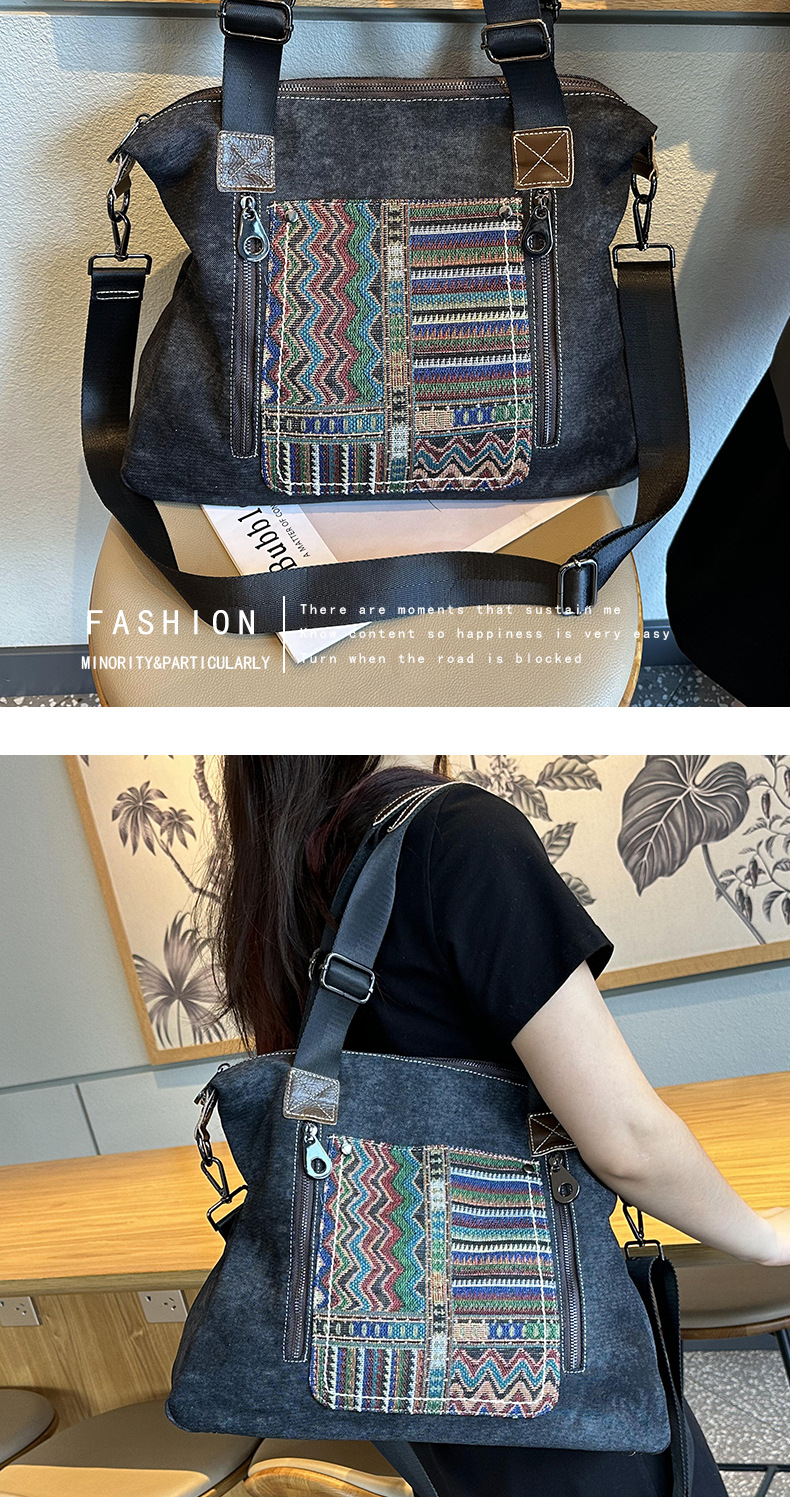 2025 새로운 캔버스 대용량 핸드백 자수 민족 스타일 숄더 백 여성 유행 여성 가방 유럽과 미국의 가방