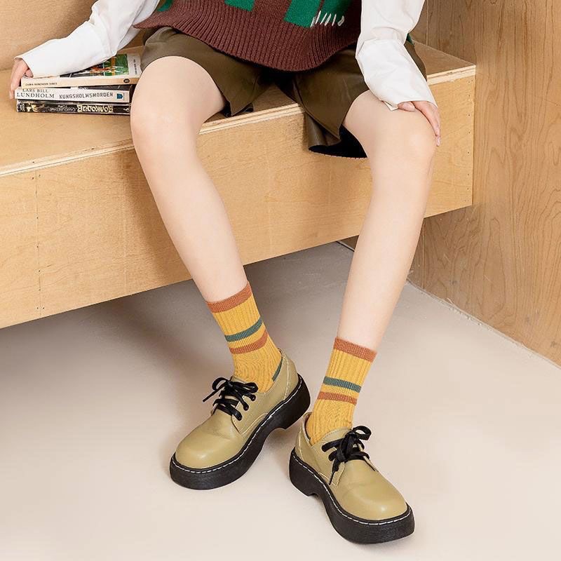 양말 여성 미들 튜브 땀 흡수 통기성 가을과 겨울 한국 스타일 컬러 스트라이프 패션 캐주얼 스타킹 컬러 매칭 캔디 컬러 여성용 양말