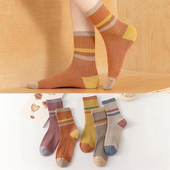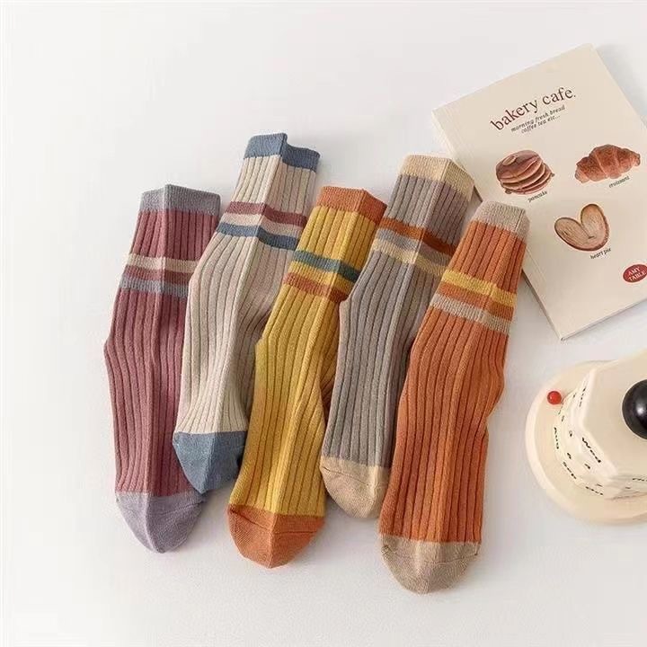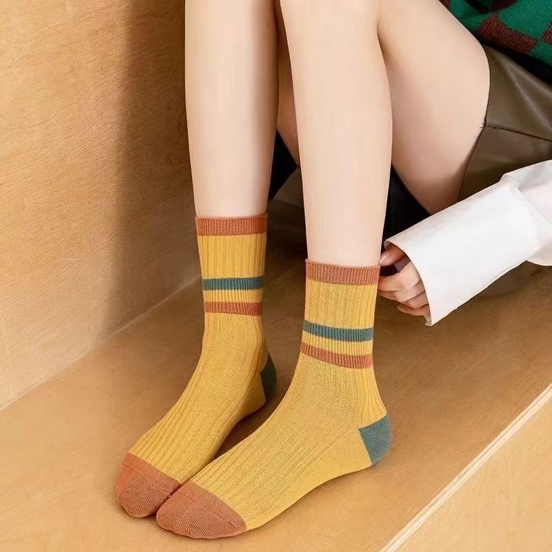 양말 여성 미들 튜브 땀 흡수 통기성 가을과 겨울 한국 스타일 컬러 스트라이프 패션 캐주얼 스타킹 컬러 매칭 캔디 컬러 여성용 양말스토어 가기