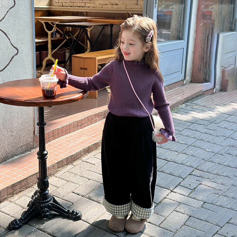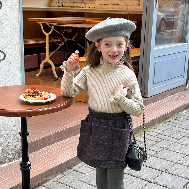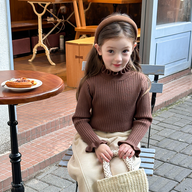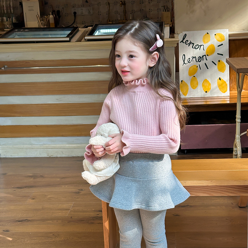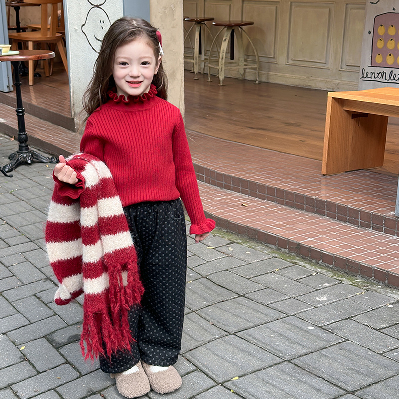 Elmo Beibei 어린이 레이스 스웨터 소녀 아기 따뜻한 안티 필링 달콤한 겨울 니트 탑
