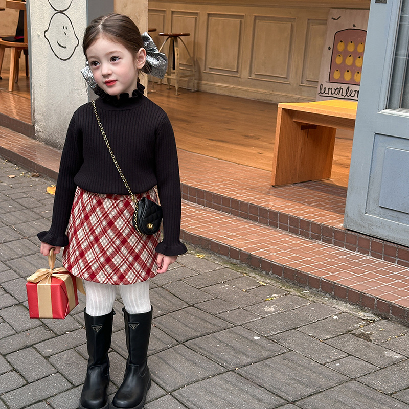 Elmo Beibei 어린이 레이스 스웨터 소녀 아기 따뜻한 안티 필링 달콤한 겨울 니트 탑스토어 가기