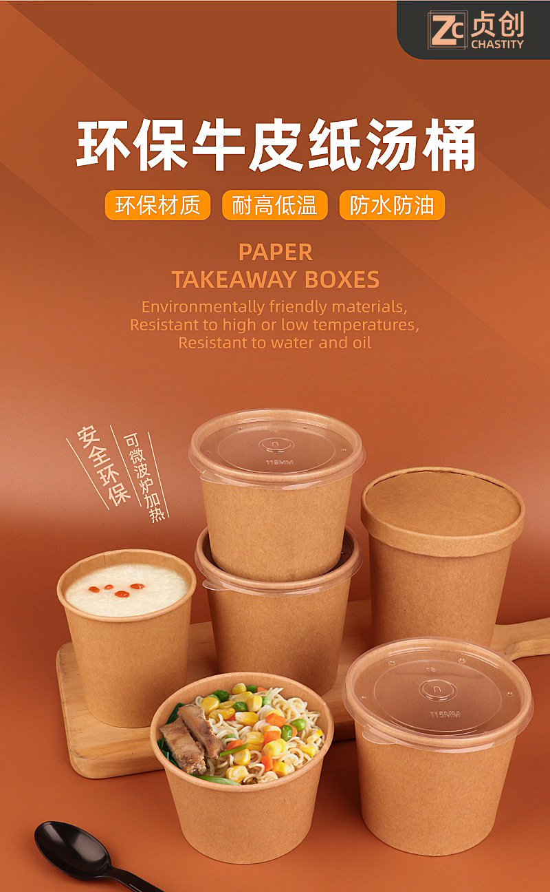포장 상자 일회용 식품 등급 가벼운 음식 테이크 아웃 종이 수프 죽 컵 뜨겁고 신 가루 종이 그릇 인스턴트 국수 양동이스토어 가기