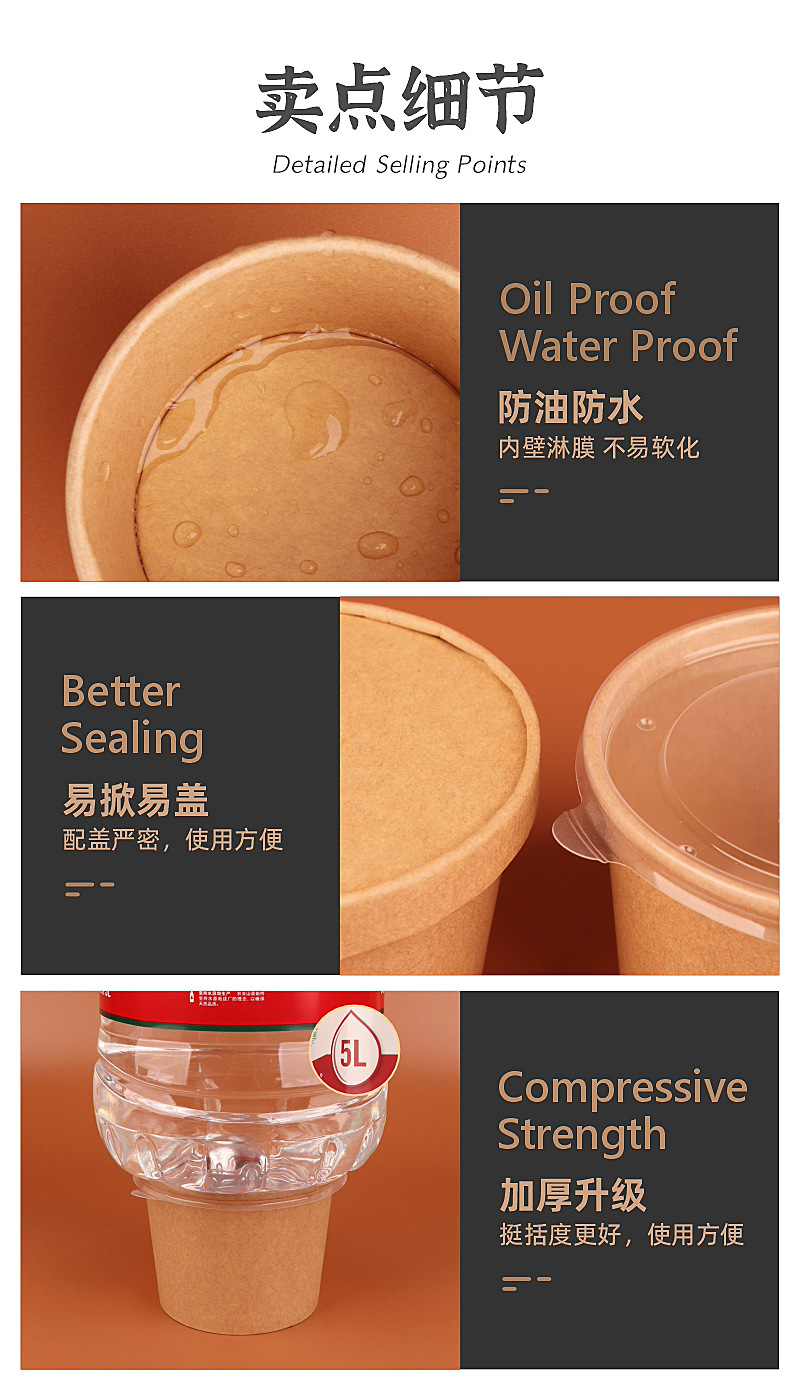 포장 상자 일회용 식품 등급 가벼운 음식 테이크 아웃 종이 수프 죽 컵 뜨겁고 신 가루 종이 그릇 인스턴트 국수 양동이