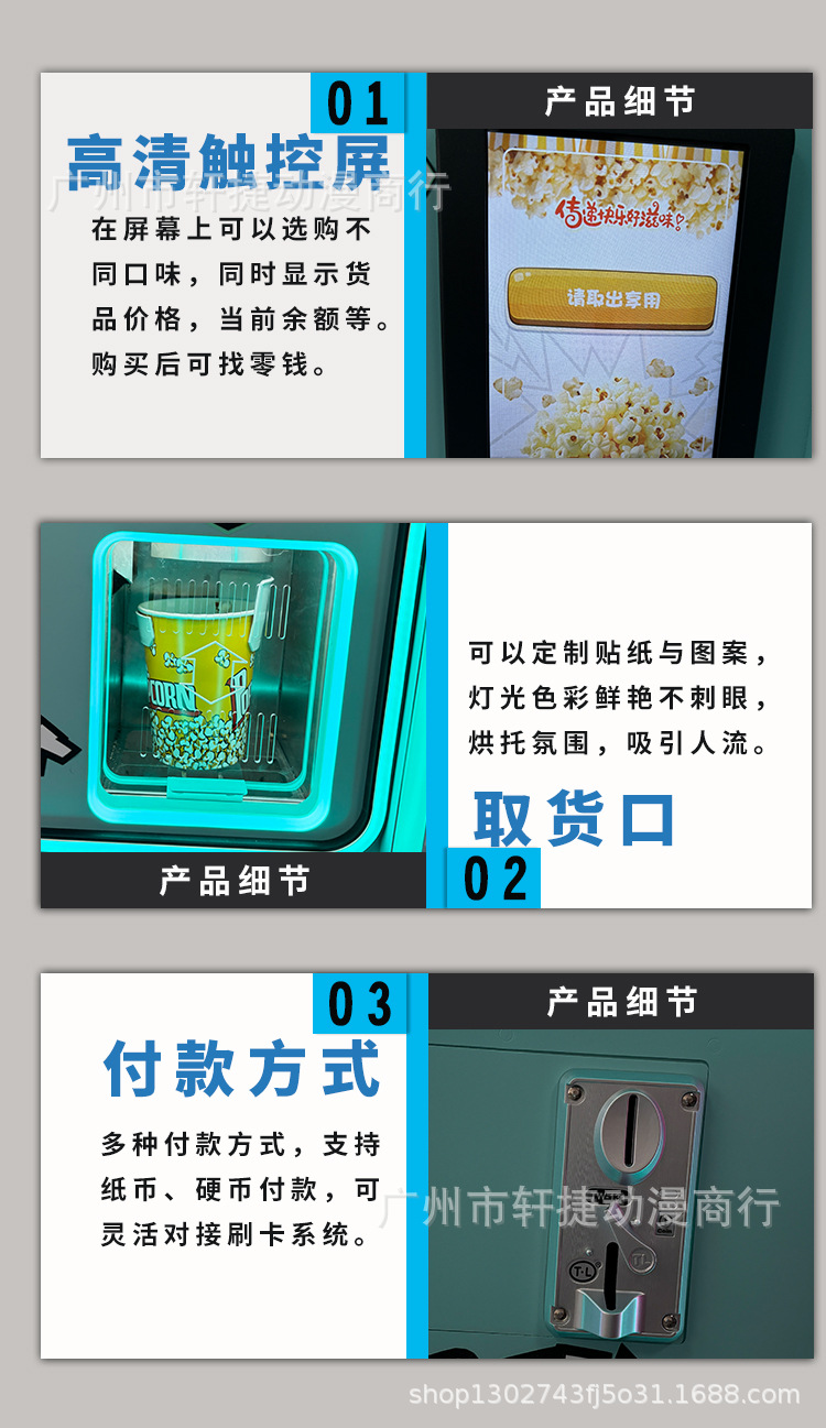 새로운 상업 지능형 자동 팝콘 기계 셀프 서비스 자동 판매기 작은 폭발성 곰 팝콘 자동 판매기