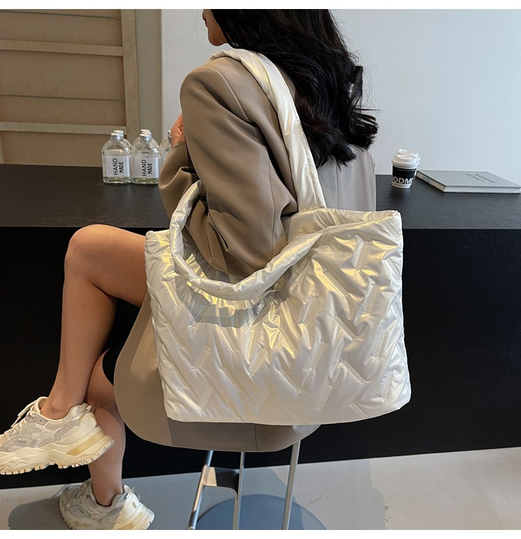 국경 간 대용량 작업 통근 토트 백 여성의 2024 가을 및 겨울 새로운 올 매치 인기있는 숄더 코튼 백스토어 가기