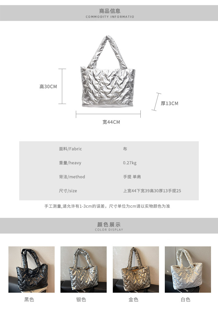 국경 간 대용량 작업 통근 토트 백 여성의 2024 가을 및 겨울 새로운 올 매치 인기있는 숄더 코튼 백