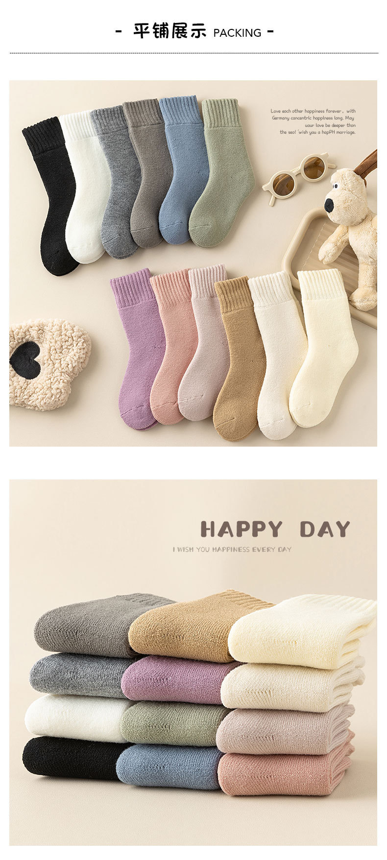 엄선된 3켤레 세트 아동용 양말, 두꺼운 보온 아동용 테리 양말, 캔디 컬러 남아 여아 중목 양말스토어 가기