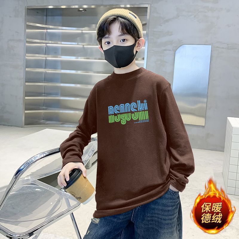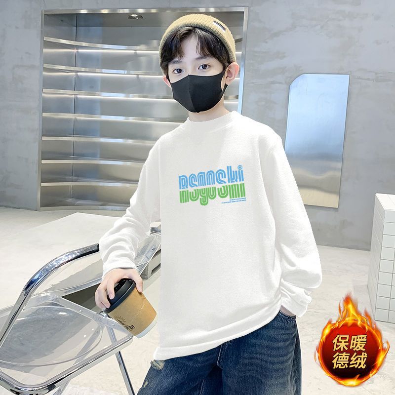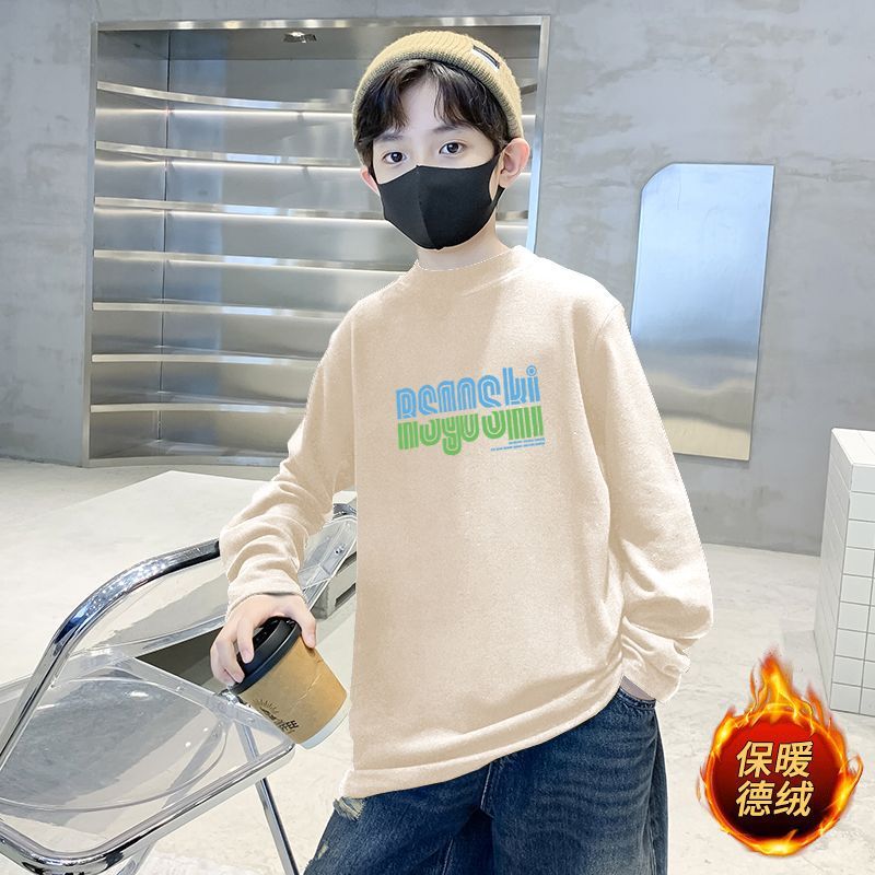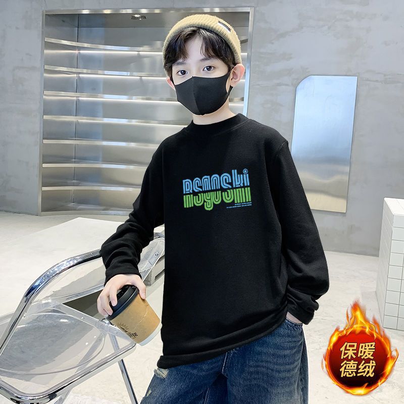 어린이 벨벳베이스 셔츠 가을과 겨울 편지 인쇄 학생의 새 소년 하프 하이 칼라 미드 빅 보이 한국 정상스토어 가기