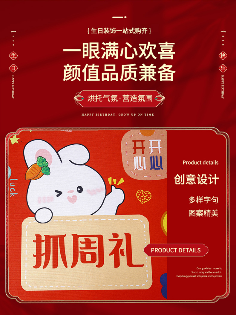 • 귀여운 토끼의 첫 번째 생일 선물 빨간 담요 + 17점 세트