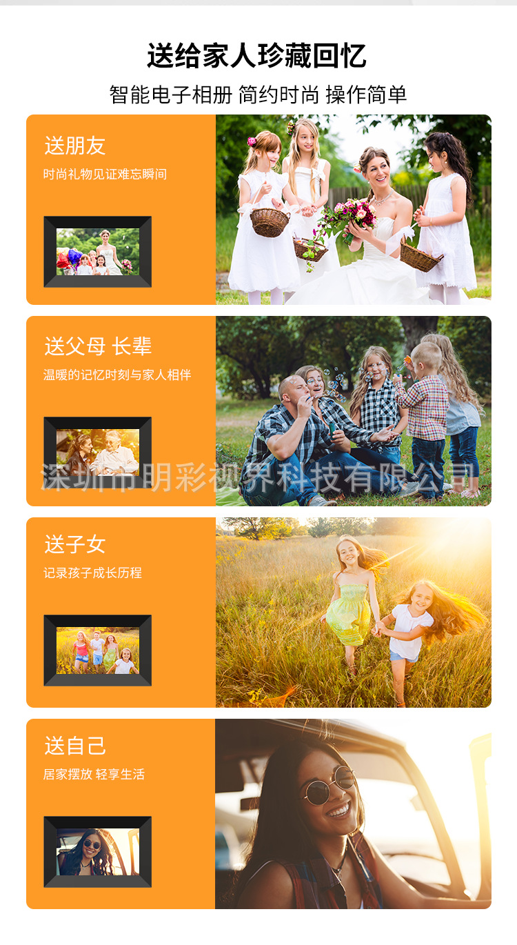 국경 8 인치 디지털 사진 프레임 와이파이 구름 사진 프레임 IPS 터치 카운터 수평 및 수직 전자 사진 앨범 플레이어스토어 가기