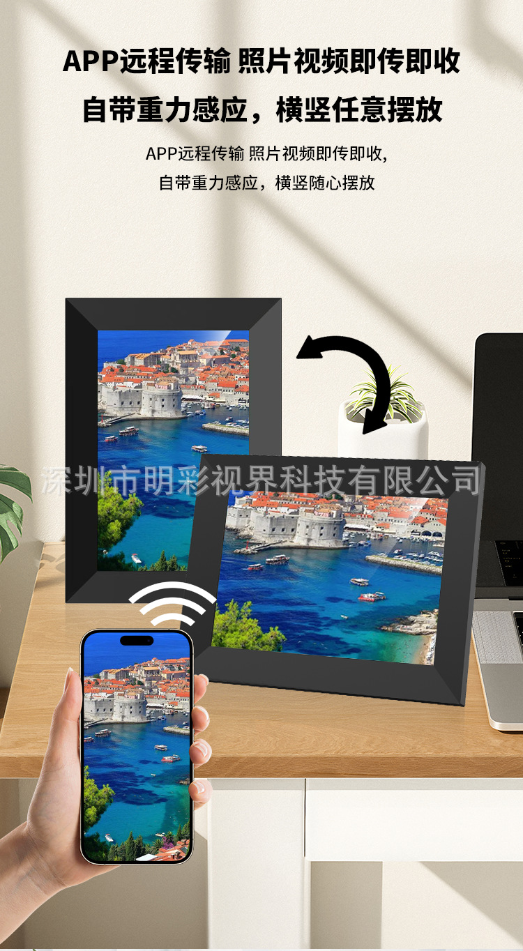 국경 8 인치 디지털 사진 프레임 와이파이 구름 사진 프레임 IPS 터치 카운터 수평 및 수직 전자 사진 앨범 플레이어