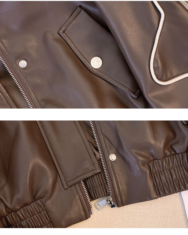 짧은 작은 남자 세탁 가죽 여자의 새로운 모든 경기 서양 스타일 느슨한 외부 착용 야구 코트 바이커 재킷 트렌디