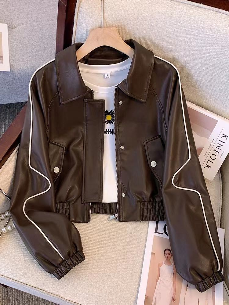 짧은 작은 남자 세탁 가죽 여자의 새로운 모든 경기 서양 스타일 느슨한 외부 착용 야구 코트 바이커 재킷 트렌디스토어 가기