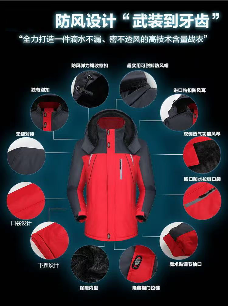 此款冲锋衣为加绒加厚款,内胆不可拆卸,防风防水。