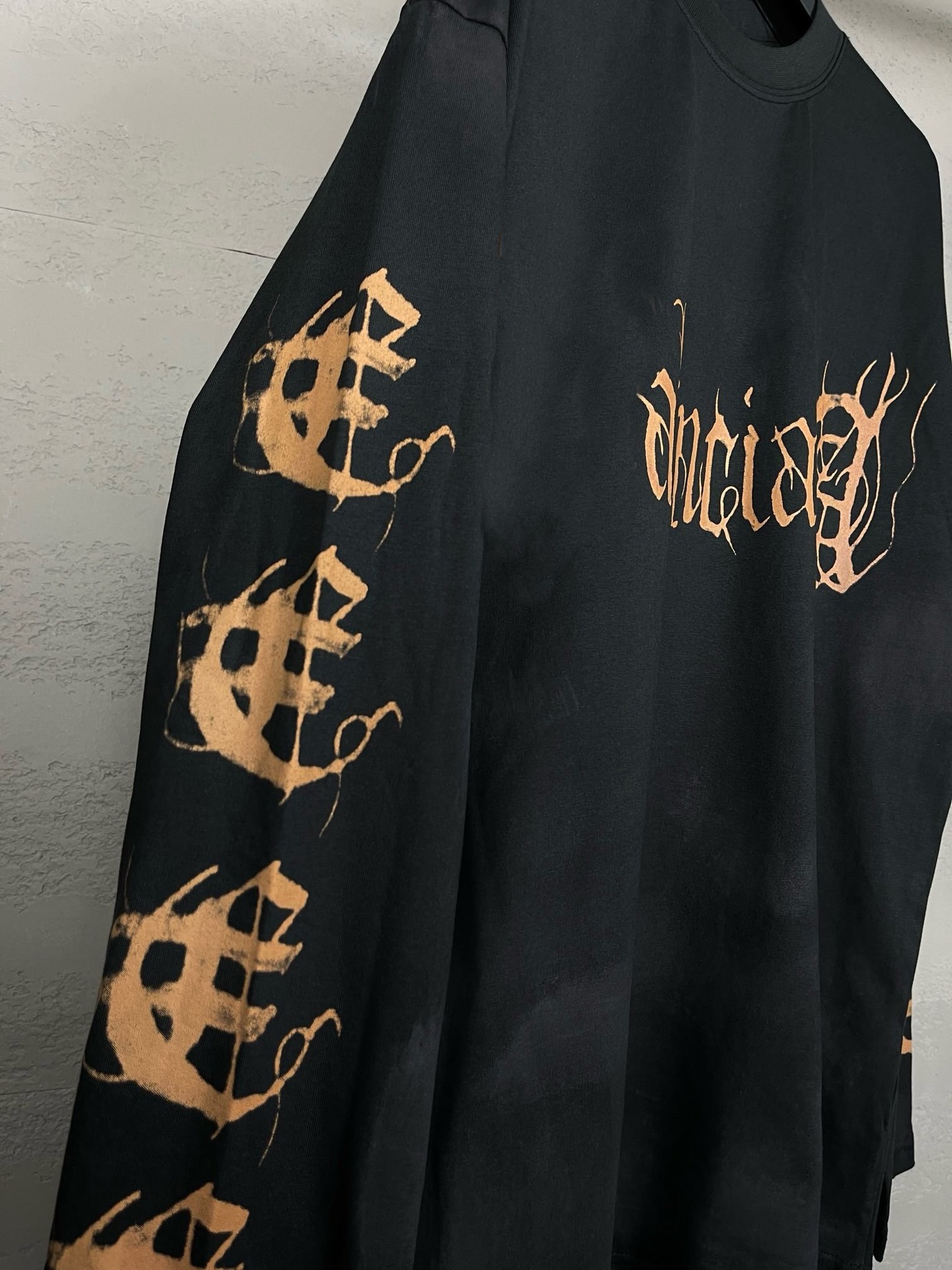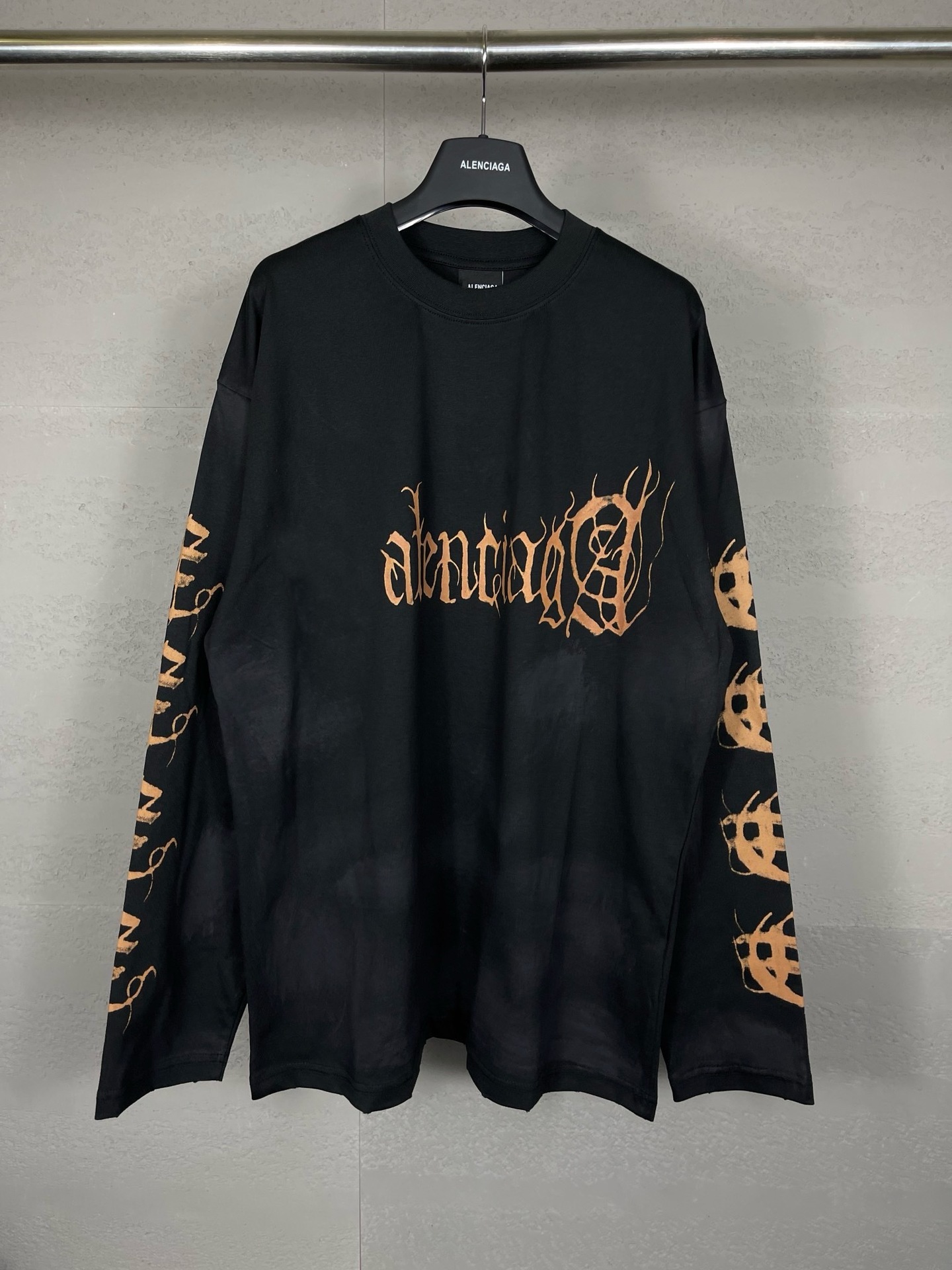 B 홈 하이 버전 파리 새로운 산스크리트어 문자 로고 손으로 그린 낡은 긴 소매 티셔츠 남성과 여성의 긴 소매 티셔츠