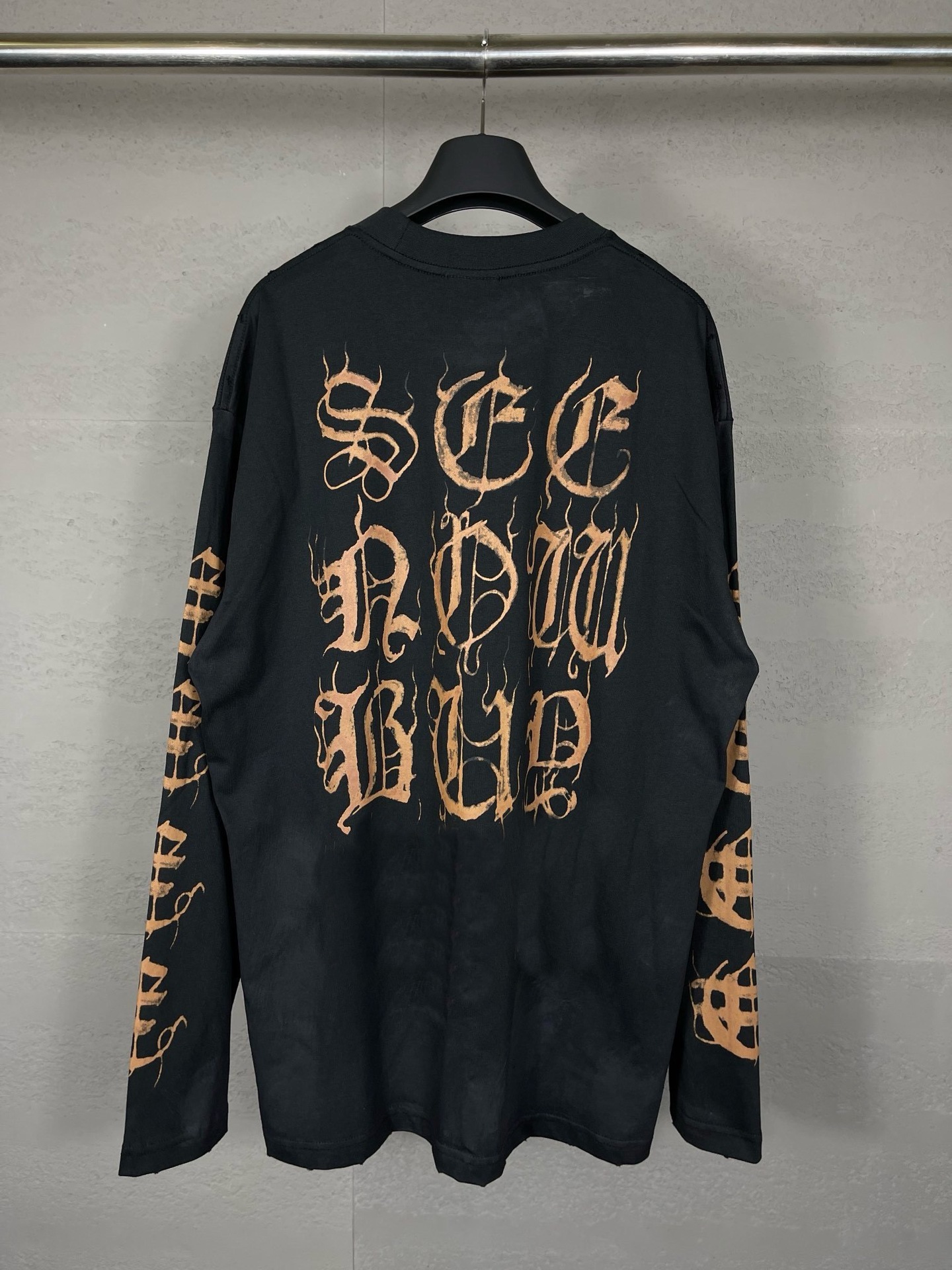 B 홈 하이 버전 파리 새로운 산스크리트어 문자 로고 손으로 그린 낡은 긴 소매 티셔츠 남성과 여성의 긴 소매 티셔츠스토어 가기