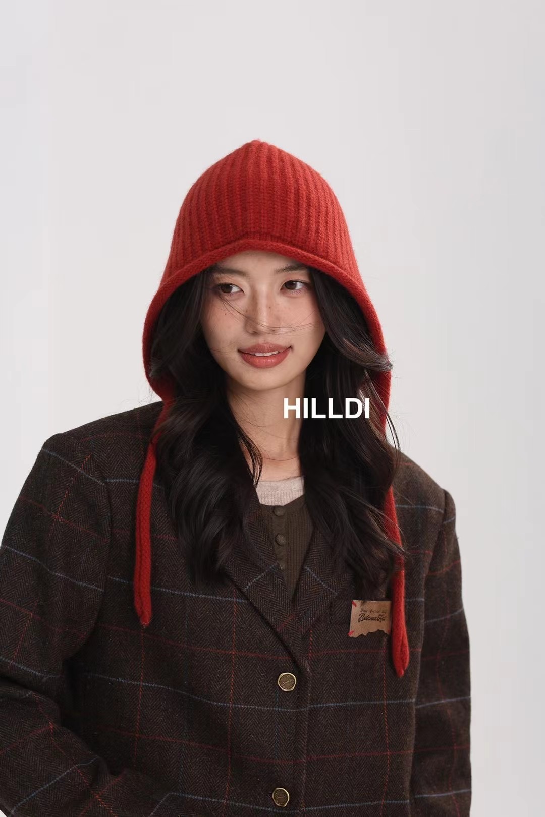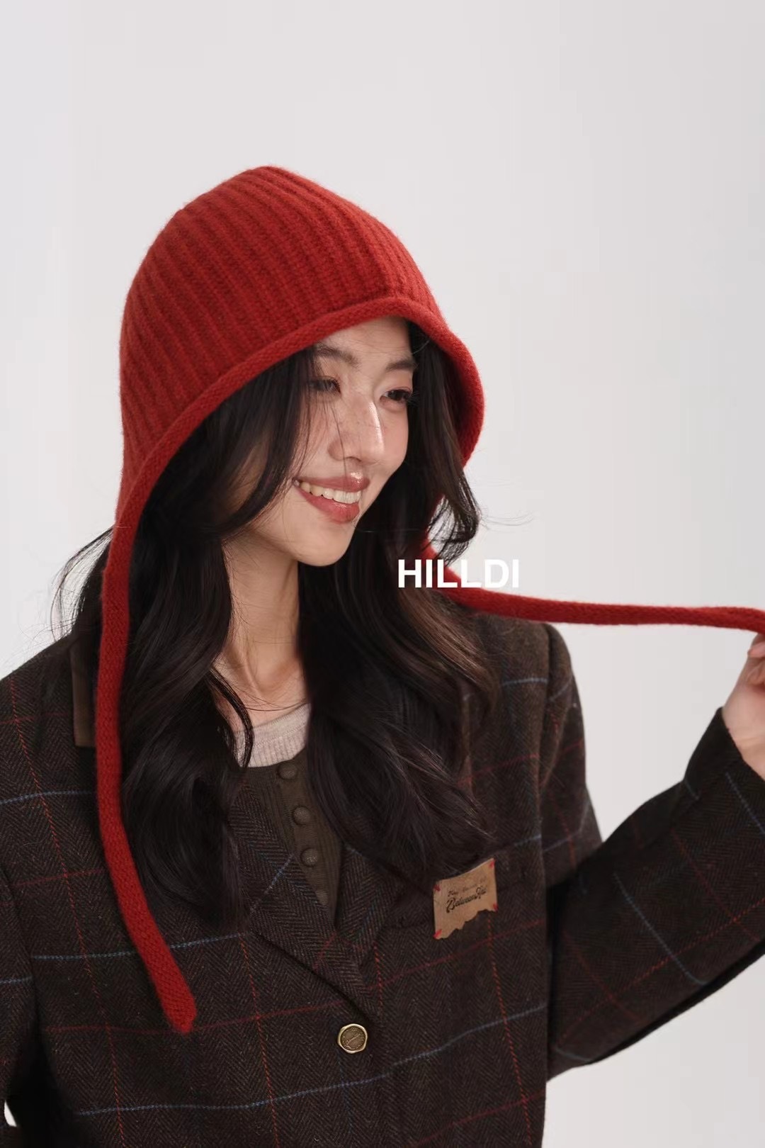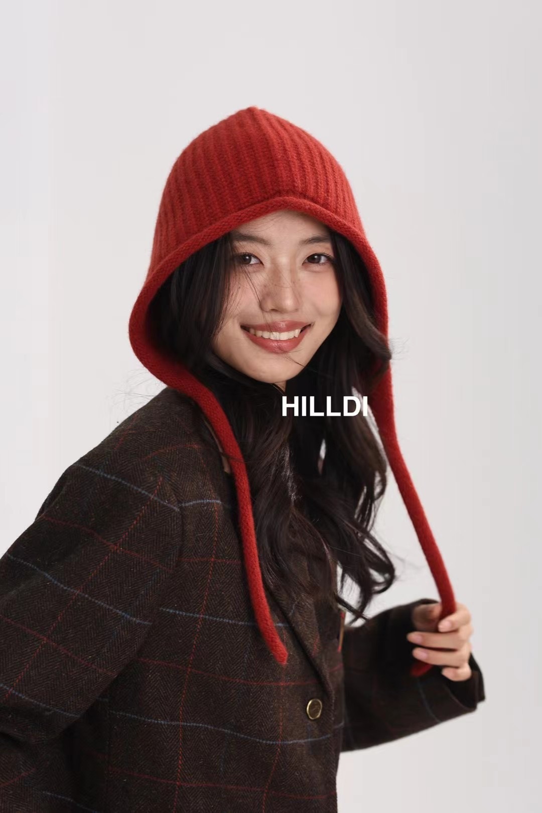 프랑스 작은 빨간 승마 후드 가을과 겨울 여성의 올 매치 양모 따뜻한 귀 보호 모자