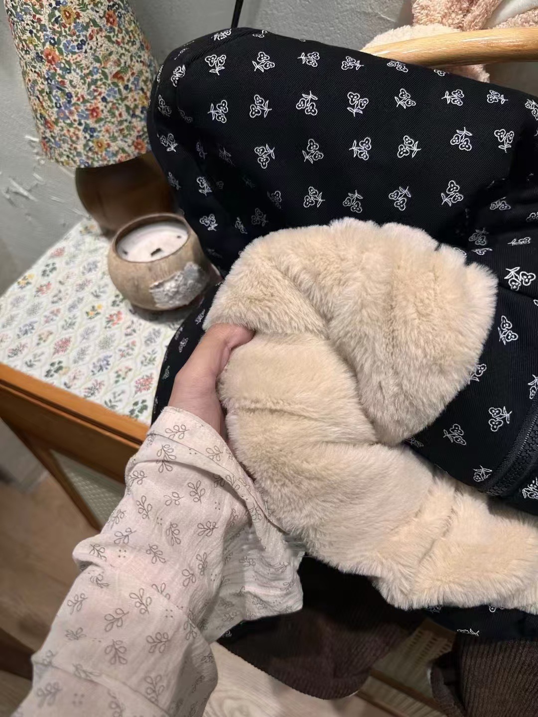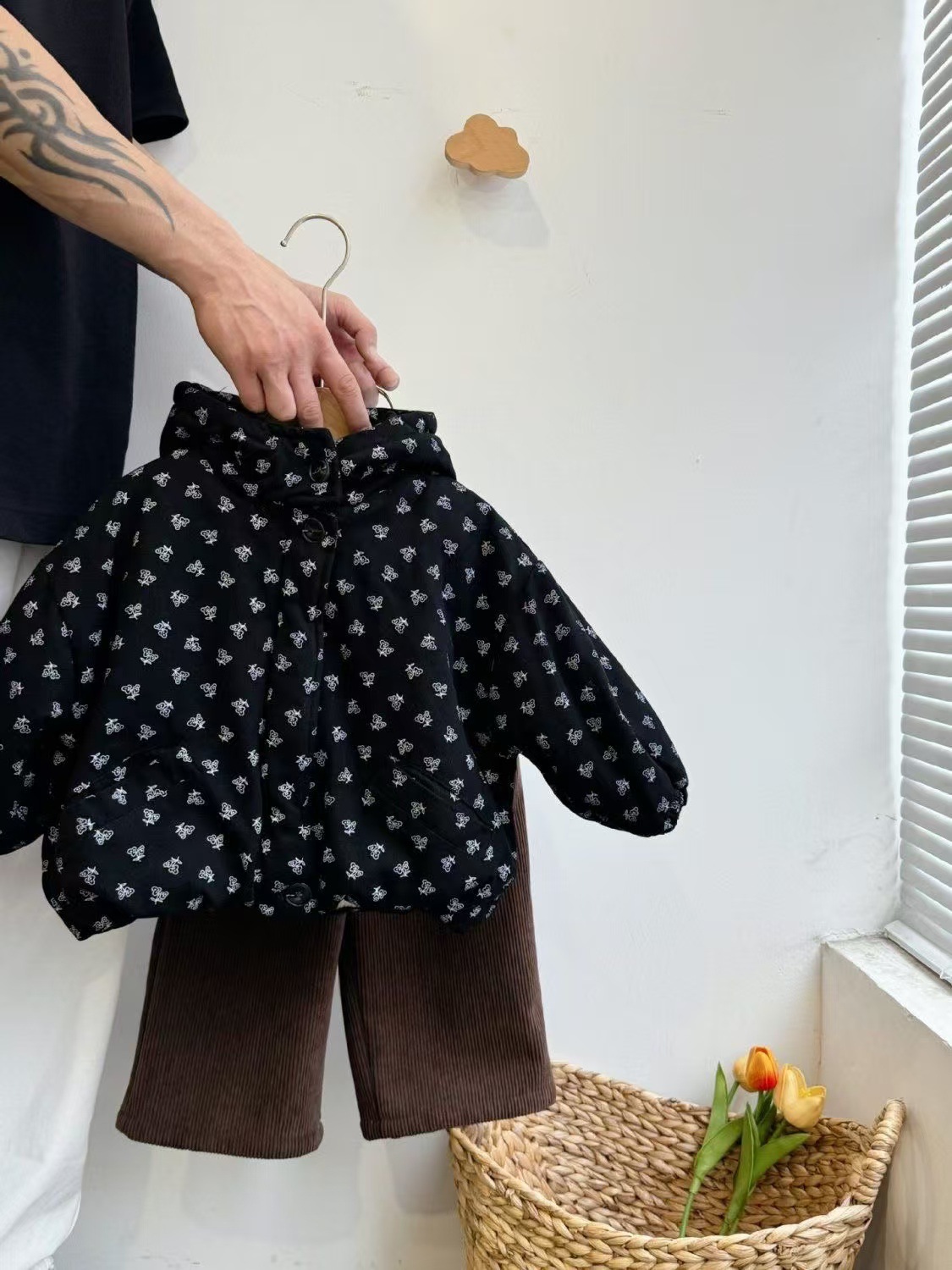 • 꽃무늬 벨벳 두꺼운 재킷은 매우 따뜻합니다.