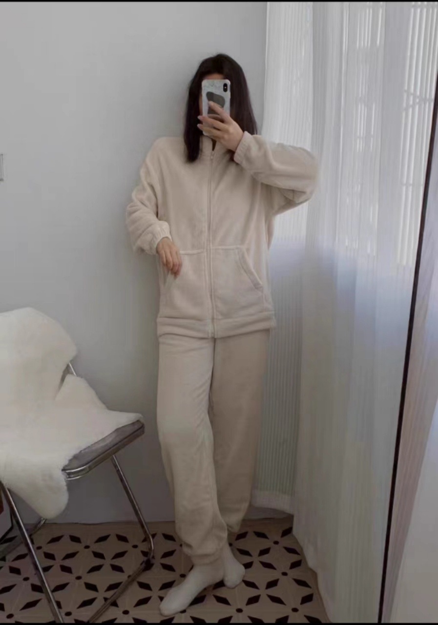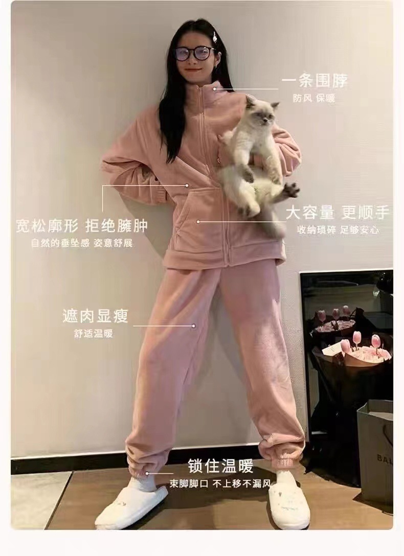 지퍼가 달린 홈웨어 세트 여성용 겨울 신상 두꺼운 플리스 긴팔 고급스러운 심플한 따뜻한 코랄 플리스 잠옷스토어 가기
