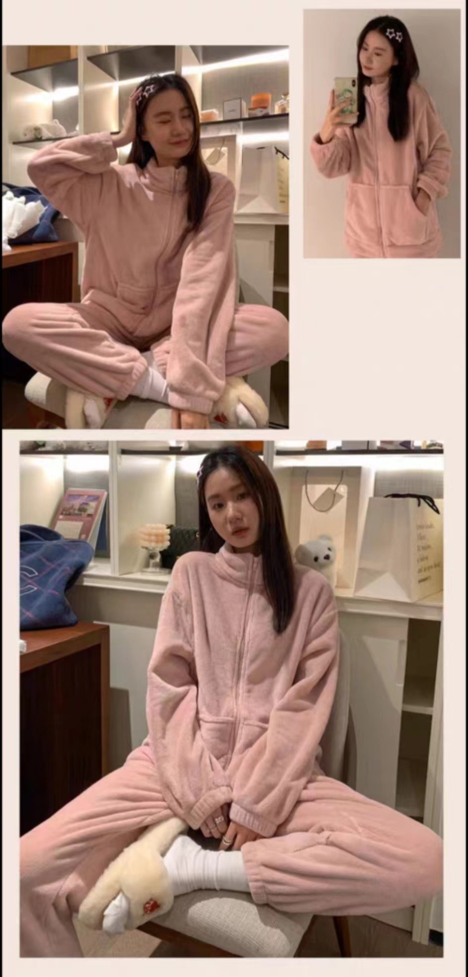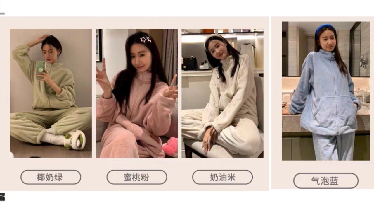高克重熊猫绒材质,撸毛质感,奶乎乎的颜色,可穿出门的睡衣