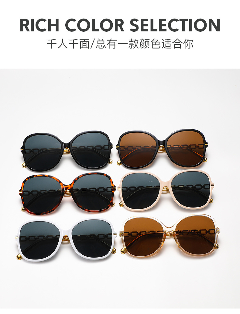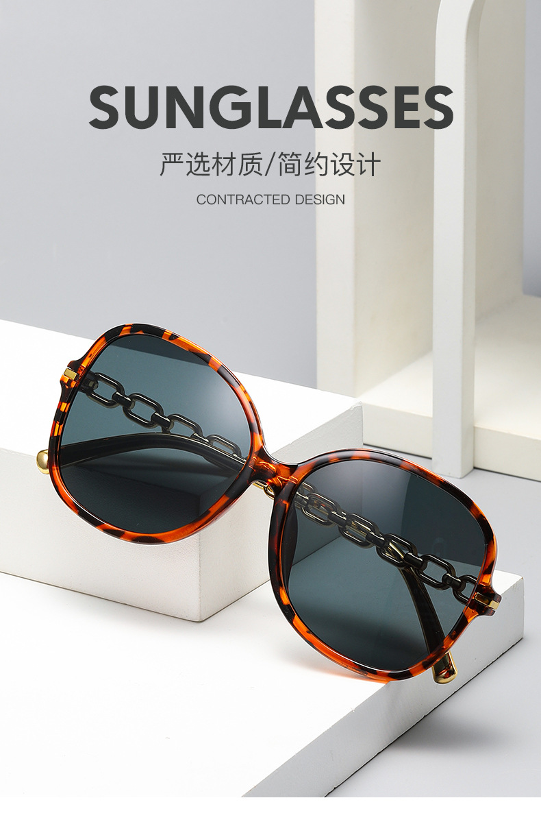 새로운 타원형 대형 프레임 선글라스 한국식 패션 독특한 체인 선글라스 인터넷 연예인 거리 촬영 올매치 선스크린 선글라스