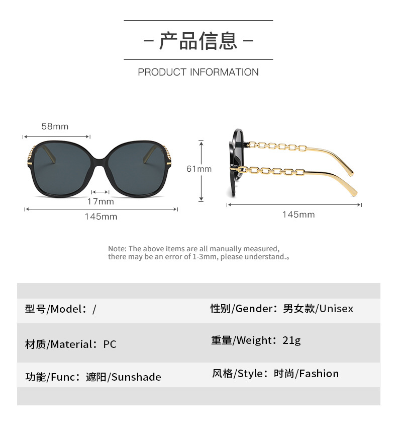 새로운 타원형 대형 프레임 선글라스 한국식 패션 독특한 체인 선글라스 인터넷 연예인 거리 촬영 올매치 선스크린 선글라스스토어 가기
