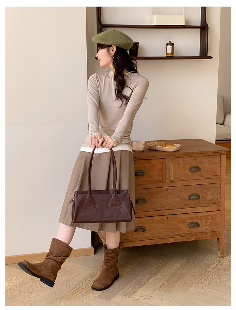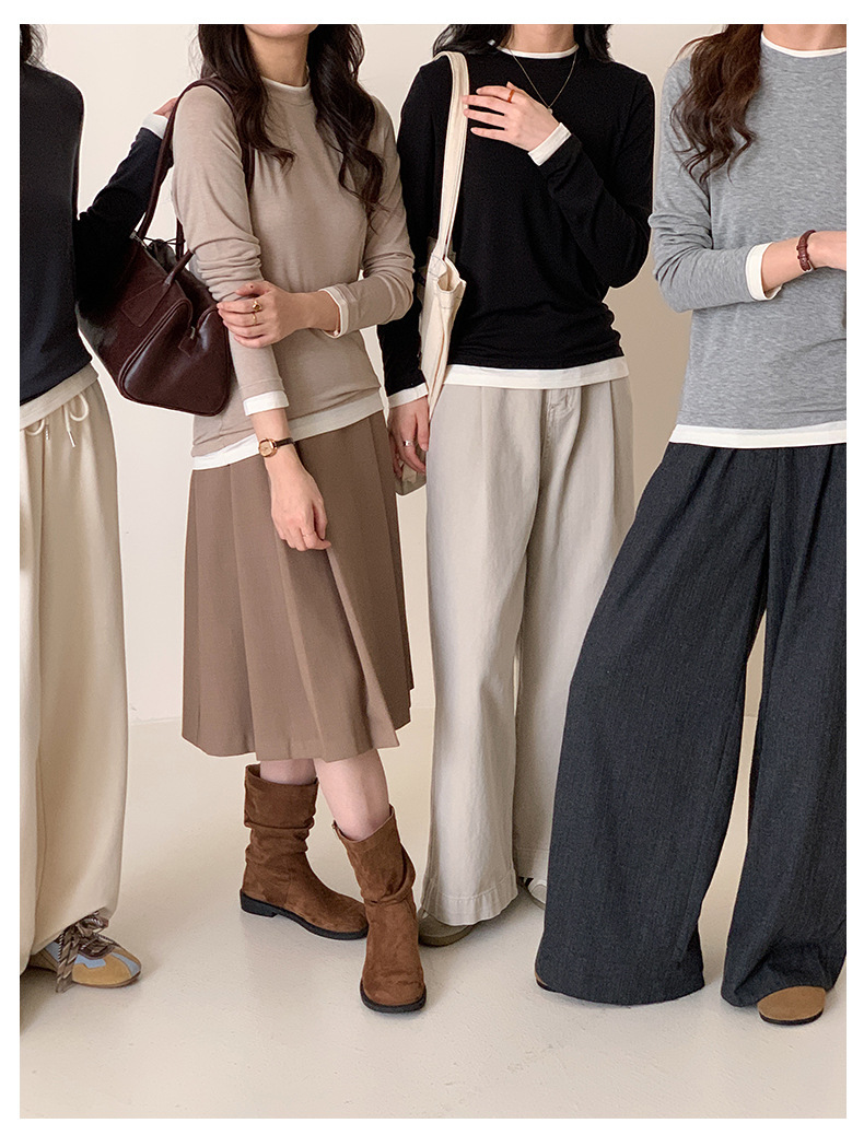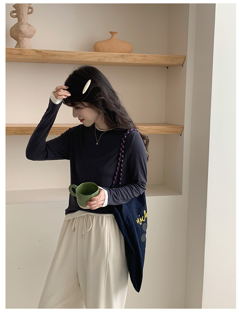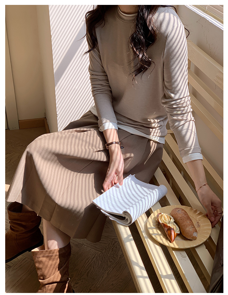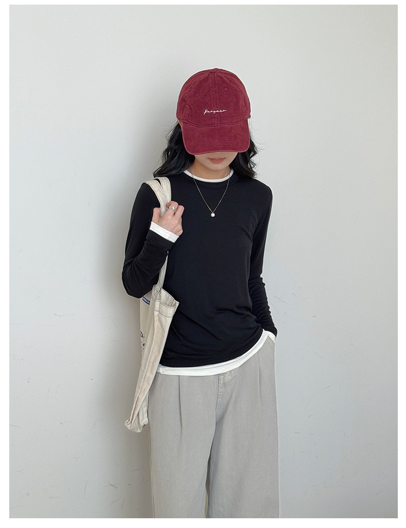 Ai Chunshi 가을과 겨울 Tencel Acetic Base 셔츠 여성의 새로운 스택 가짜 2 피스 크루 넥 니트 셔츠 간단한 인테리어스토어 가기