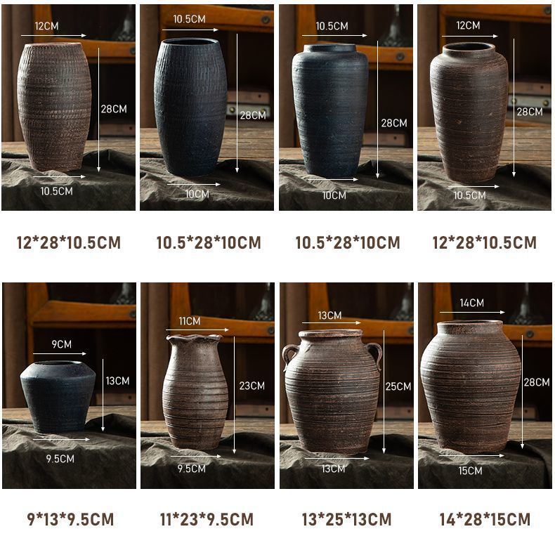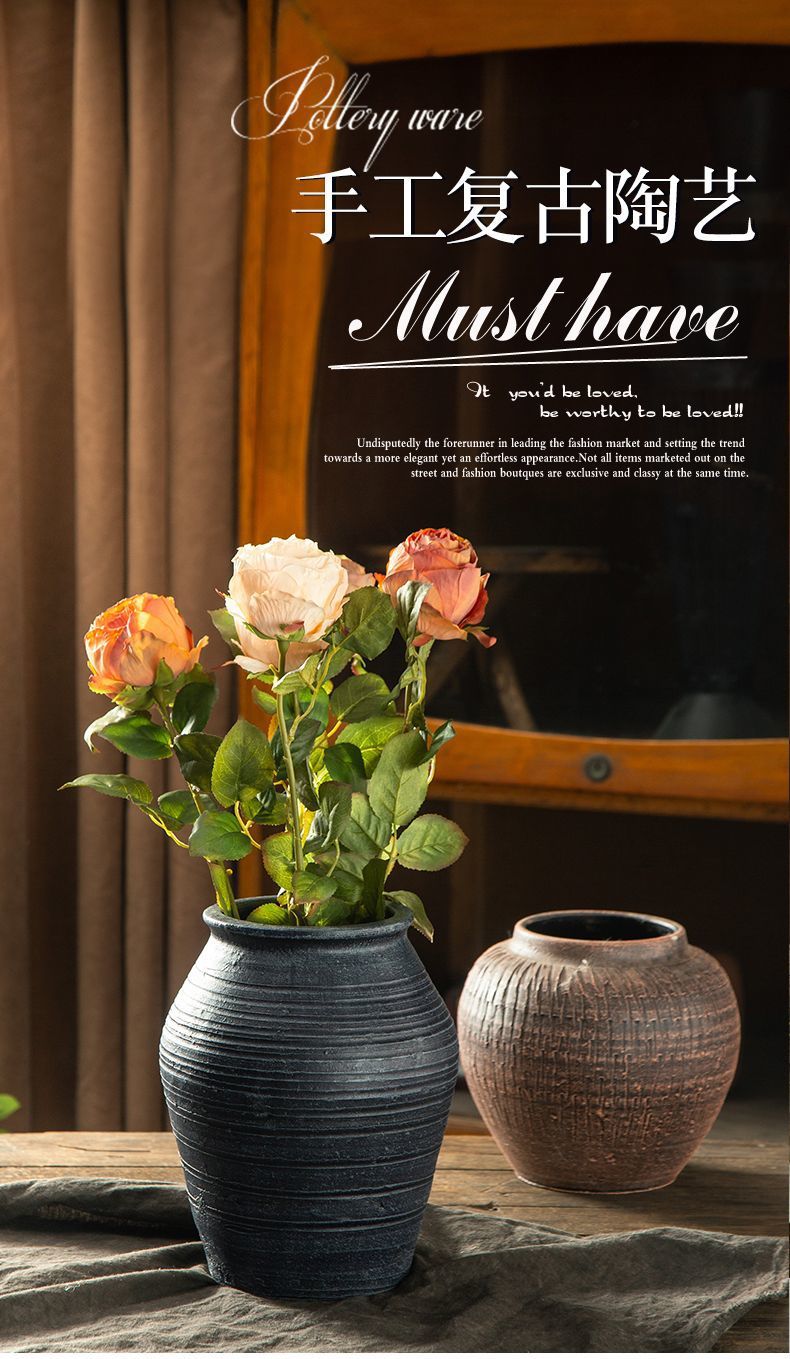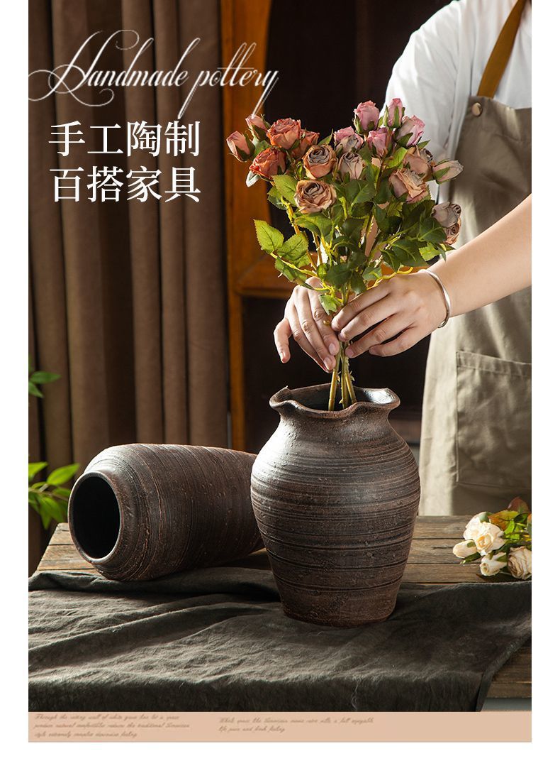 수제 빈티지 거친 도자기 꽃병 재배 말린 꽃 도자기 냄비 꽃 꽃병 토양 도자기 냄비 통기성 수경 꽃 간단한 꽃병스토어 가기