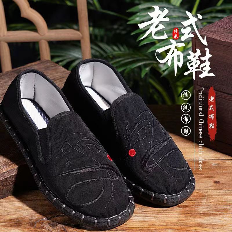 2024 새로운 오래된 베이징 천 신발 플랫 타이어 바닥 야외 스포츠 패션 자수 남성 민족 스타일 자수스토어 가기