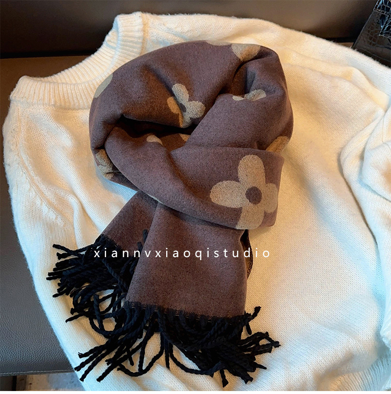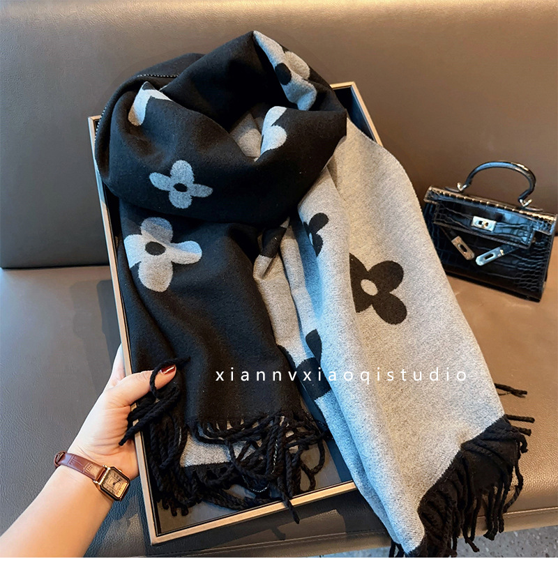 요정 부드럽고 편안한 코어-스펀 원사 두꺼운 스카프 외부 이중 목적 목도리 여성의 겨울 양면 따뜻한 목스토어 가기