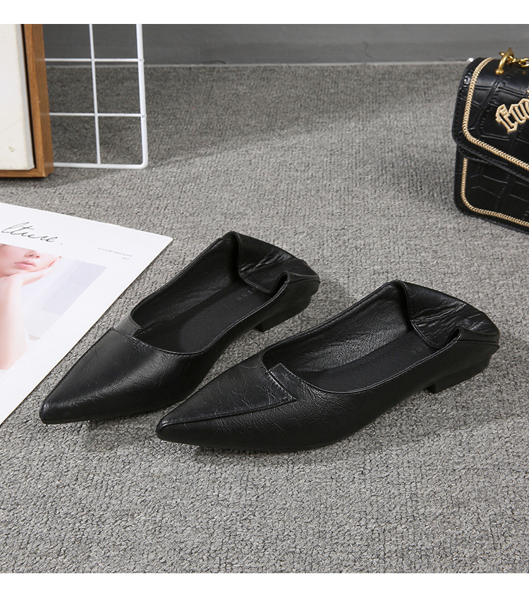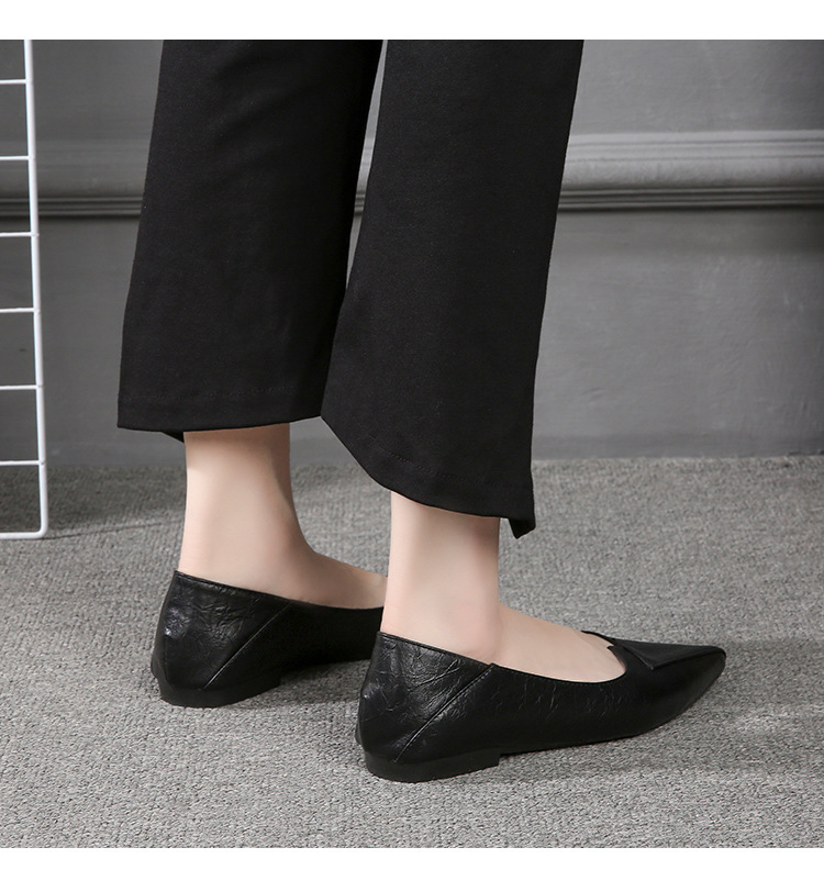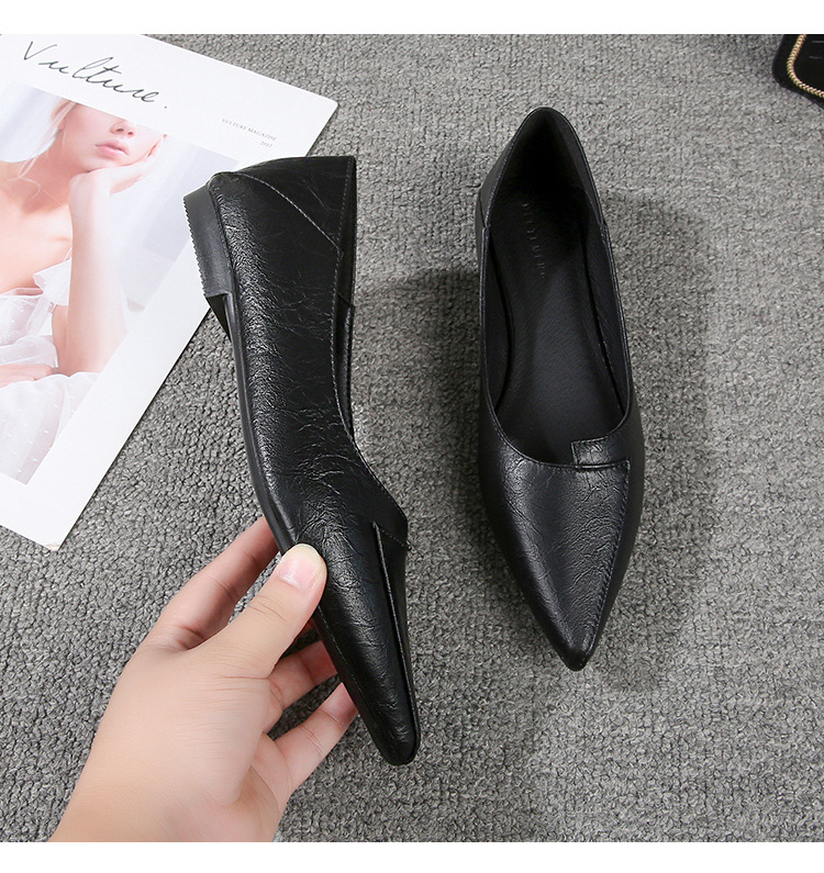 스튜어디스 부드러운 밑창 전문 작업 신발 여성 검은 가죽 신발 오래 서 피곤하지 않은 발 부드러운 가죽 포인팅 싱글 레이어 신발 여성용 플랫 솔스토어 가기