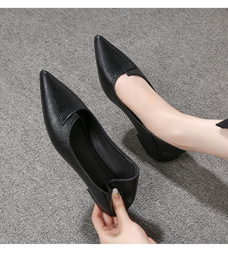 스튜어디스 부드러운 밑창 전문 작업 신발 여성 검은 가죽 신발 오래 서 피곤하지 않은 발 부드러운 가죽 포인팅 싱글 레이어 신발 여성용 플랫 솔
