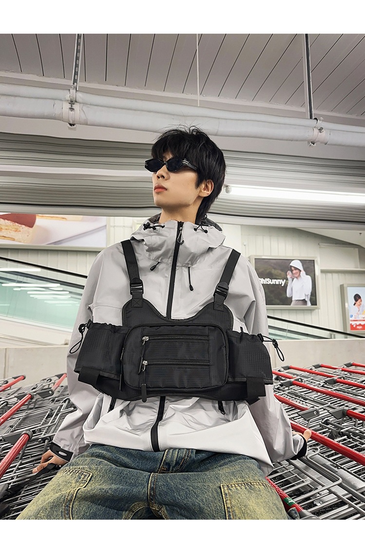 트렌디 한 브랜드 전술 가방 기능성 조끼 가방 캐주얼 개성 남성 가방 조끼 가방 남자 가슴 가방 툴링 백팩