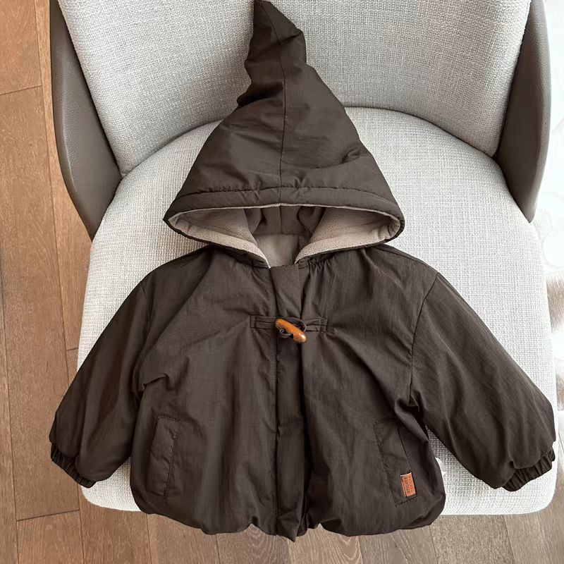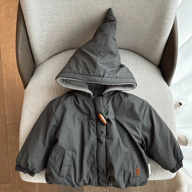 따뜻한 아기 겨울 착용 아기 마녀 모자 캐주얼 코트 트렌디 기모 어린이 3 방형 퀼트 코튼 기모 마녀 모자