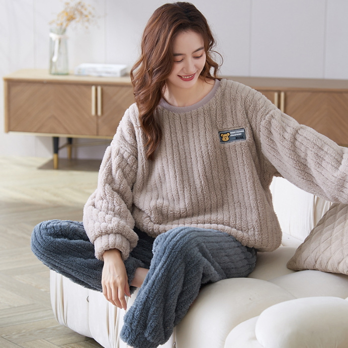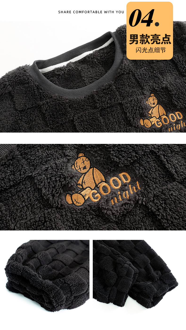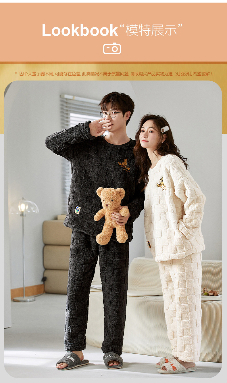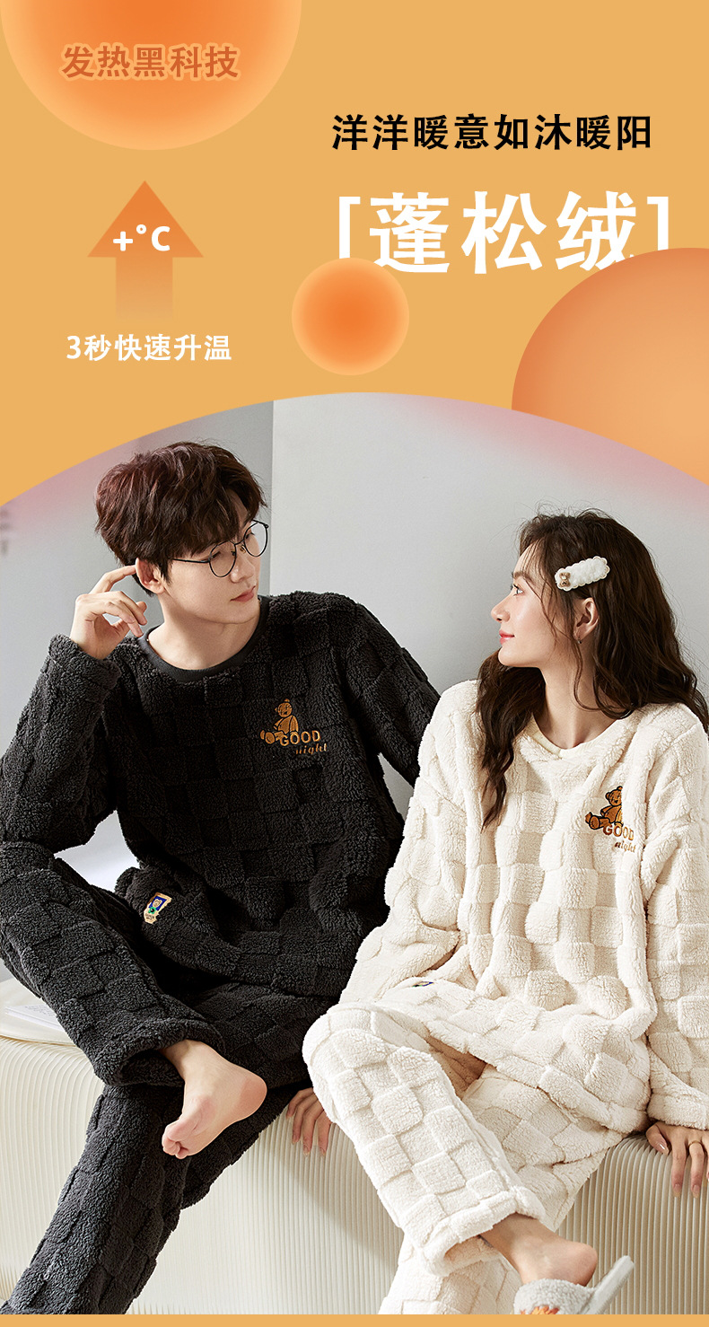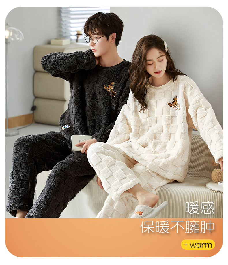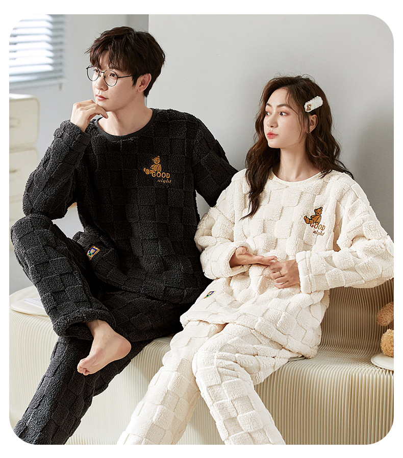 여성을위한 플러시 자카드 커플 잠옷 겨울 긴팔 풀오버 두꺼운 따뜻한 산호 벨벳 남성 홈웨어 세트스토어 가기