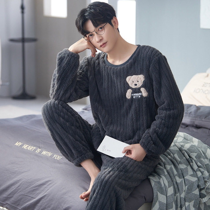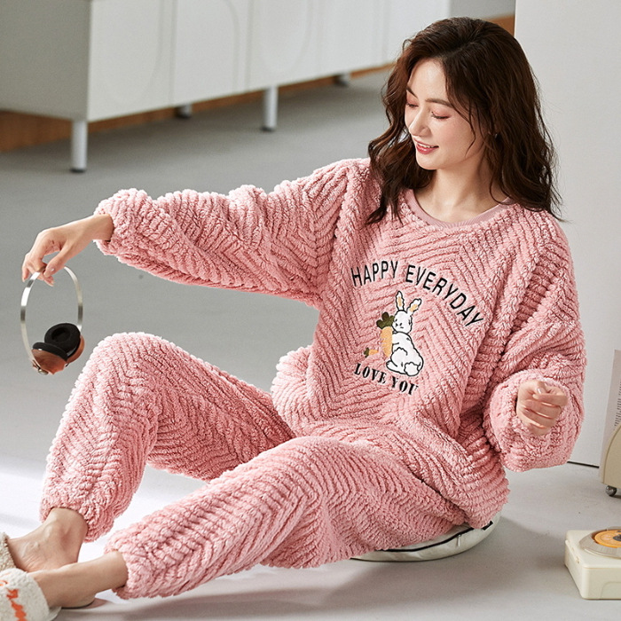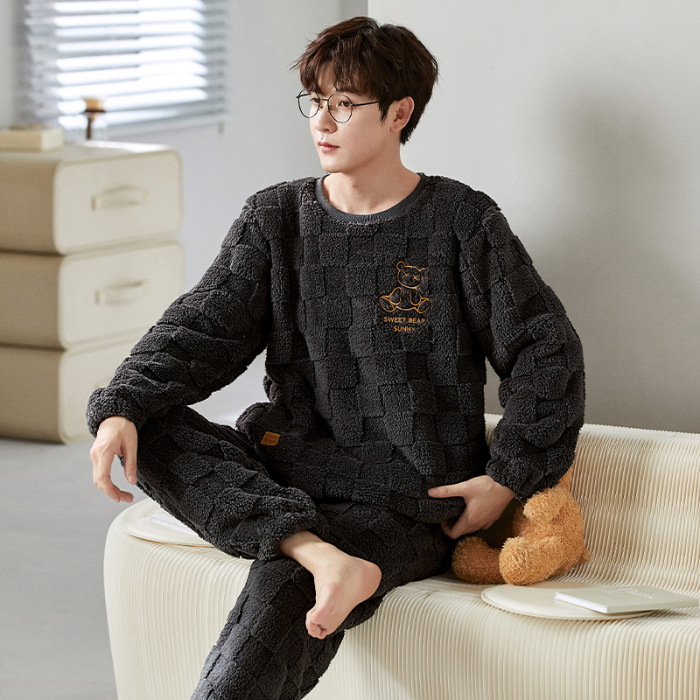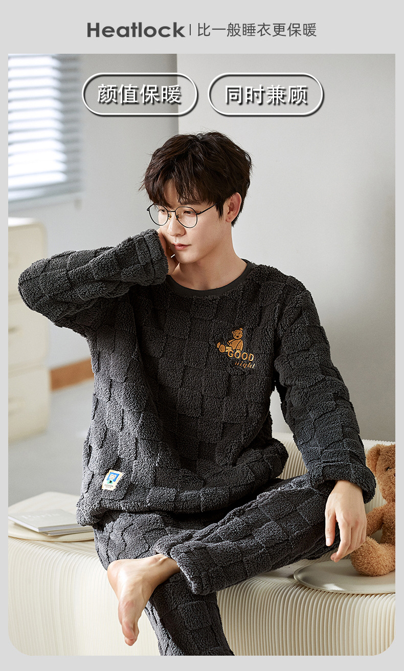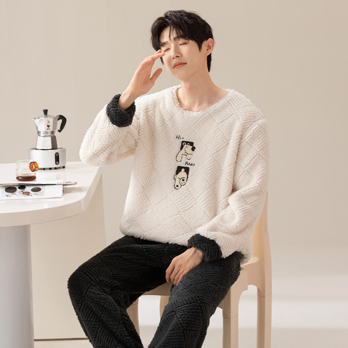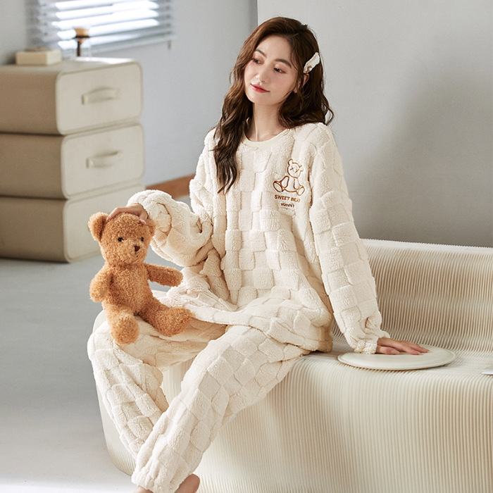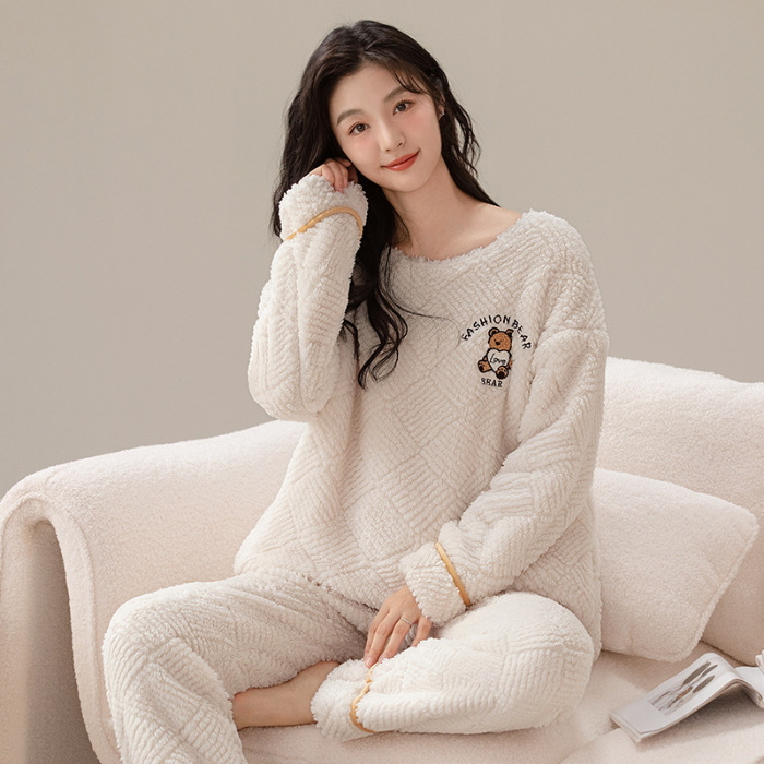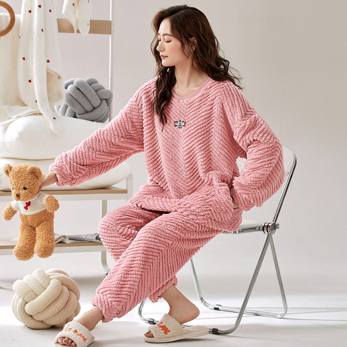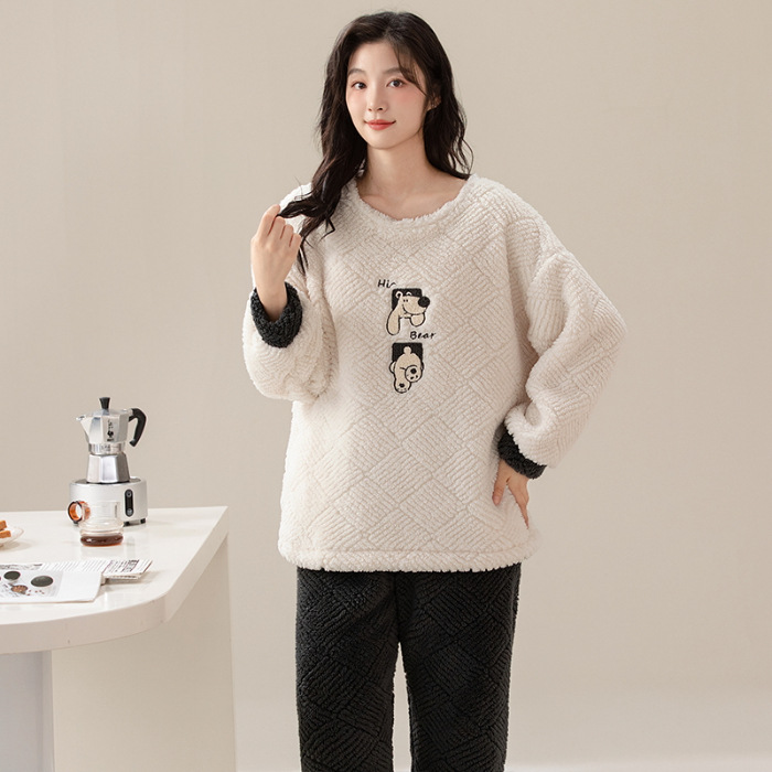 여성을위한 플러시 자카드 커플 잠옷 겨울 긴팔 풀오버 두꺼운 따뜻한 산호 벨벳 남성 홈웨어 세트스토어 가기