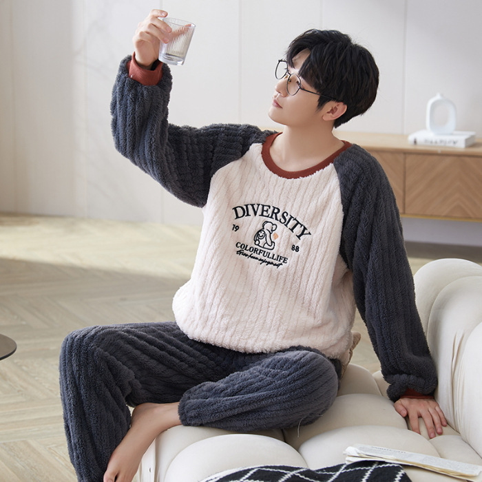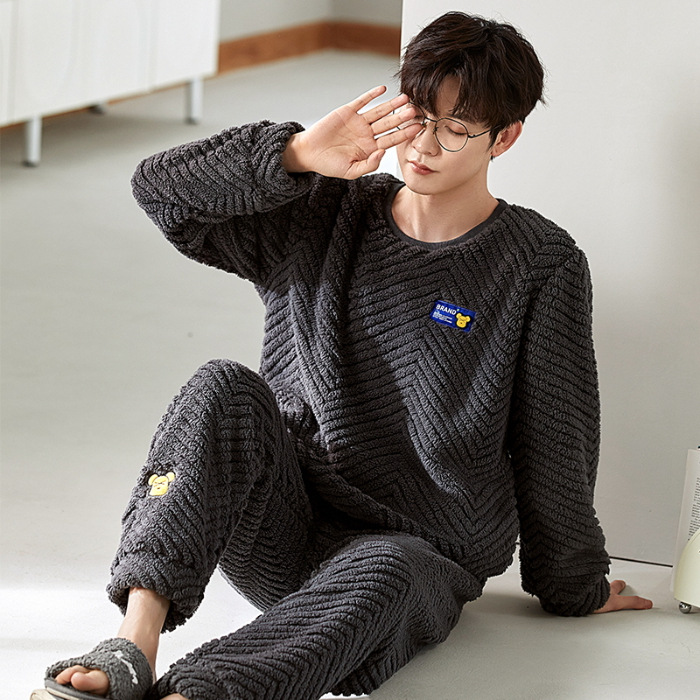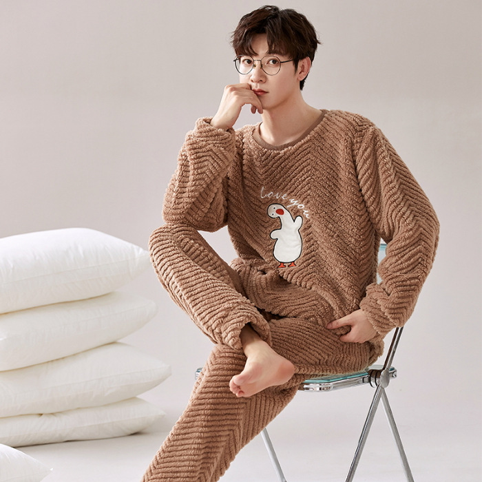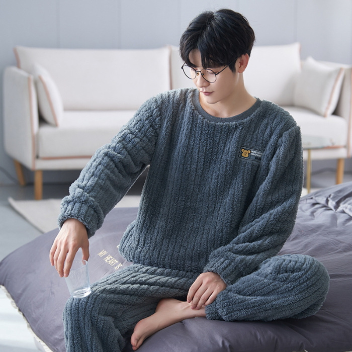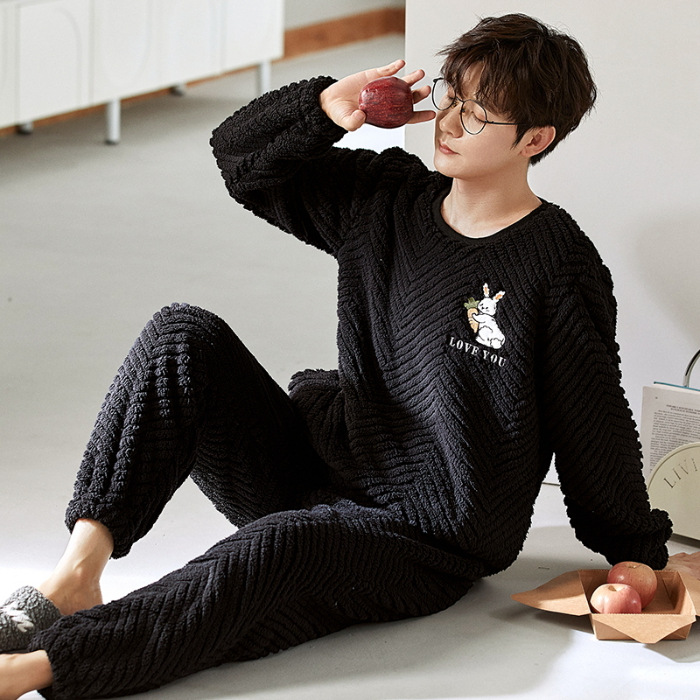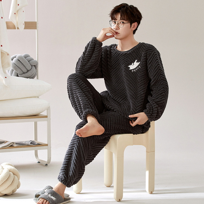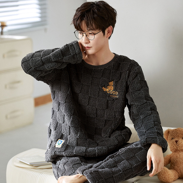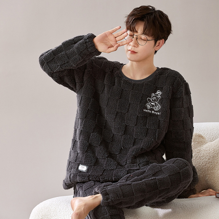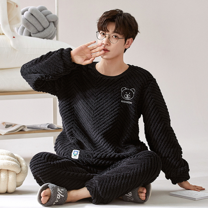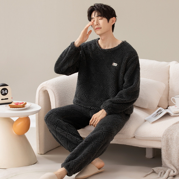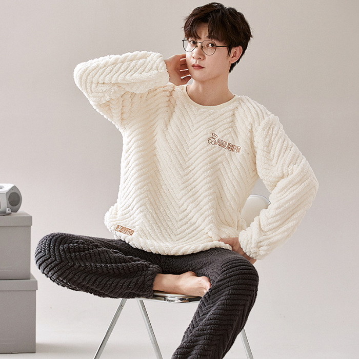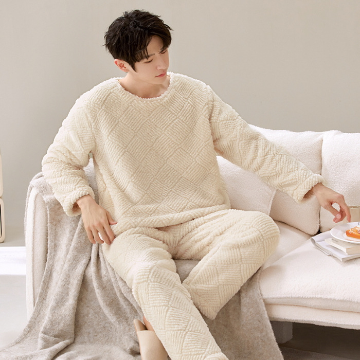여성을위한 플러시 자카드 커플 잠옷 겨울 긴팔 풀오버 두꺼운 따뜻한 산호 벨벳 남성 홈웨어 세트
