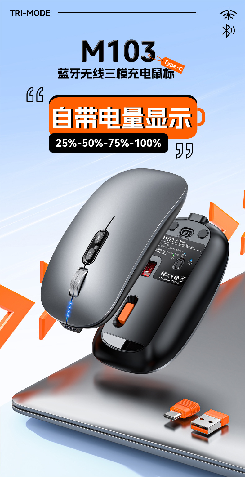 전원 표시 기능이 있는 3모드 블루투스 무선 마우스, 원클릭 데스크탑 복귀, 무소음, 충전 가능, 재고 있음, 도매, 태블릿용스토어 가기