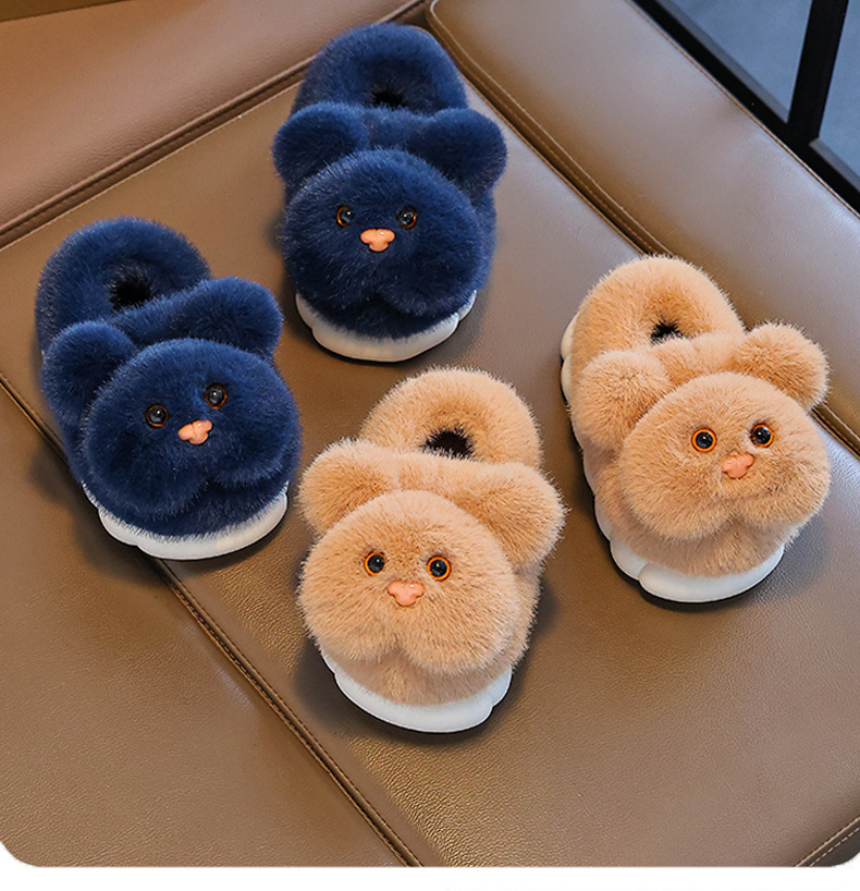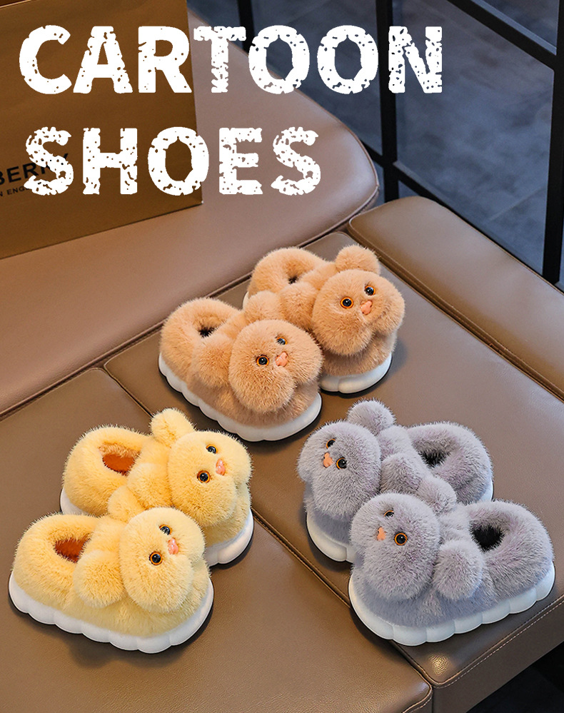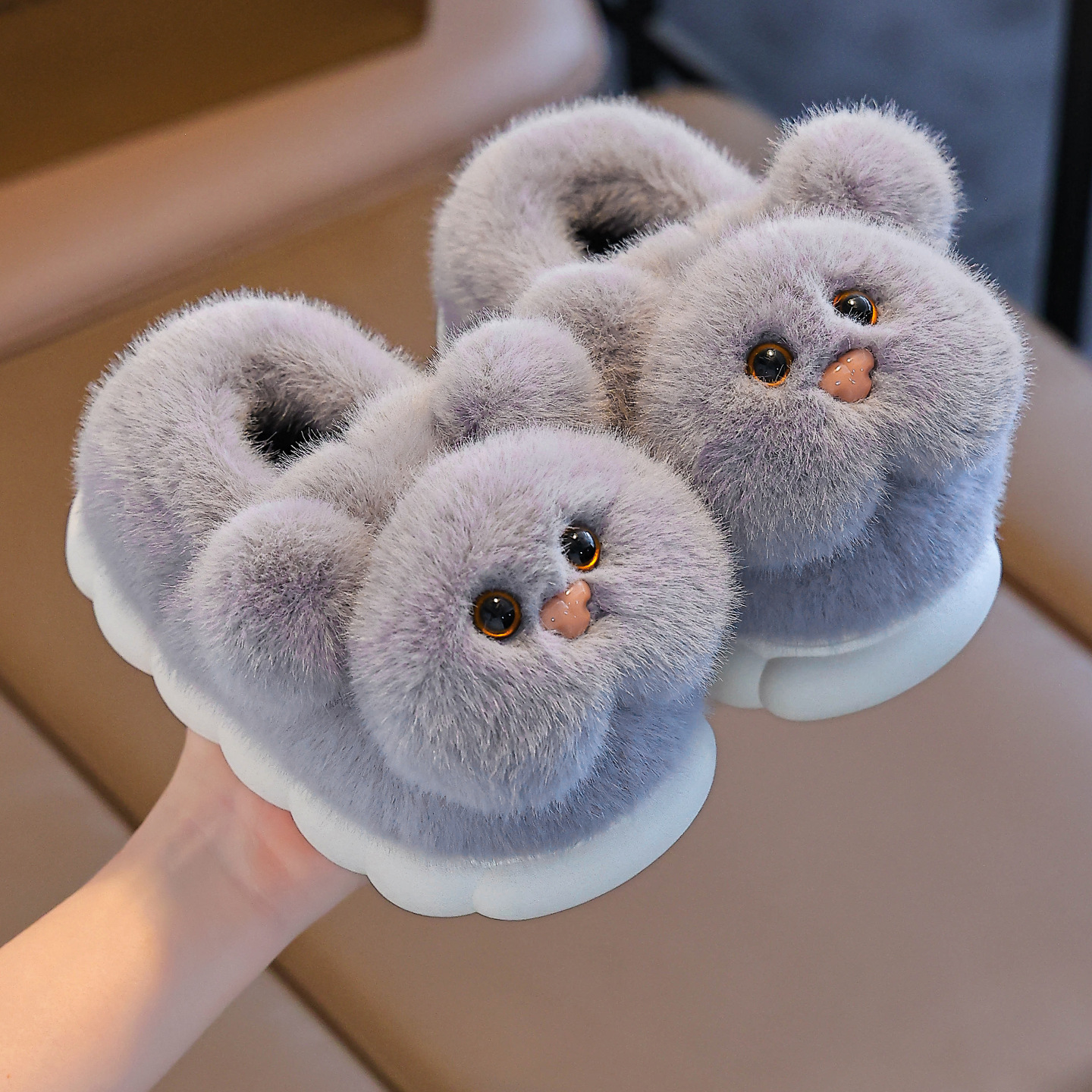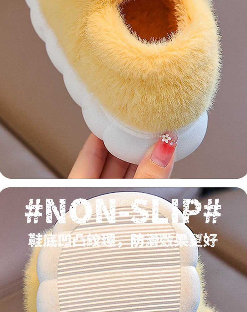 겨울철 남아 및 여아용 아동용 면 슬리퍼, 작은 어린이 및 유아용 만화 실내 및 가정용 모피 가방, 귀여운 면 신발