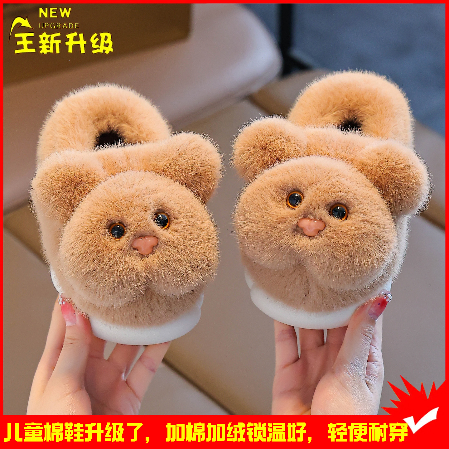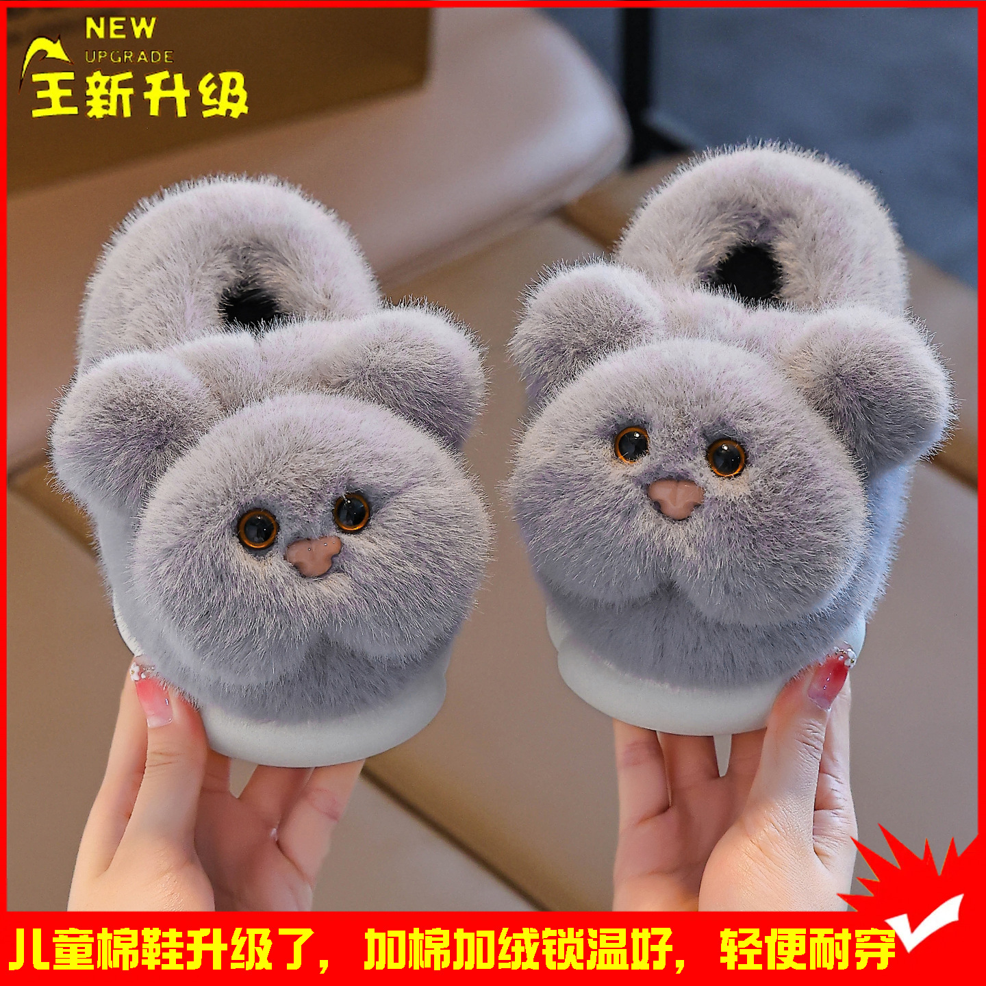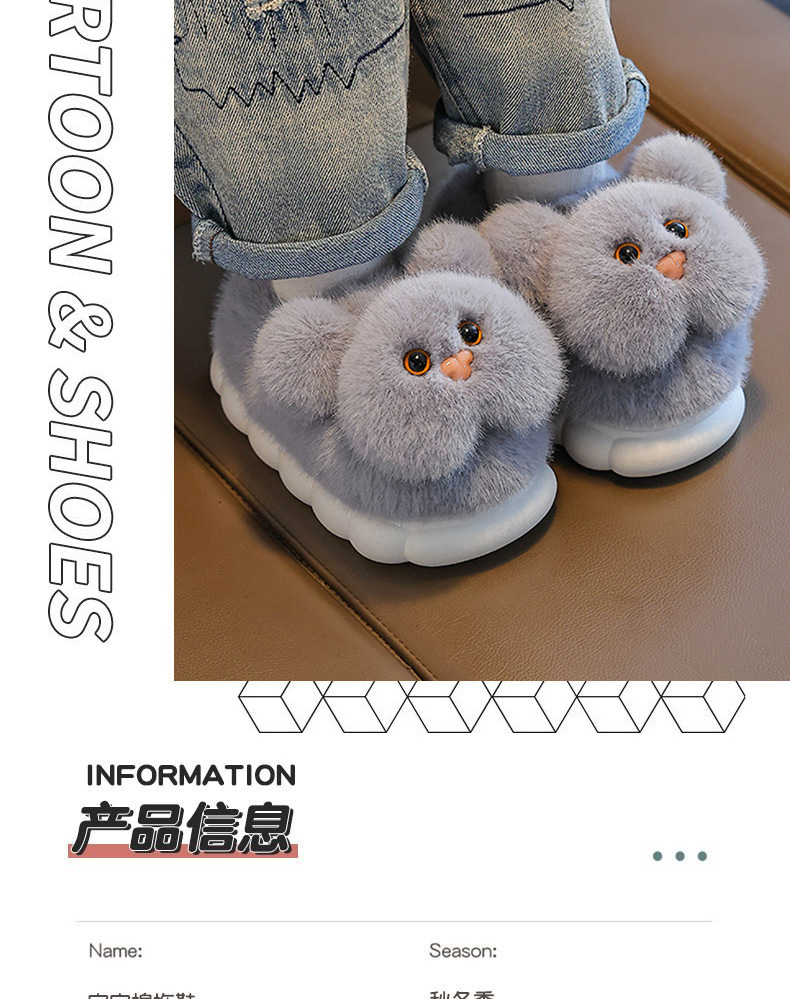 겨울철 남아 및 여아용 아동용 면 슬리퍼, 작은 어린이 및 유아용 만화 실내 및 가정용 모피 가방, 귀여운 면 신발스토어 가기
