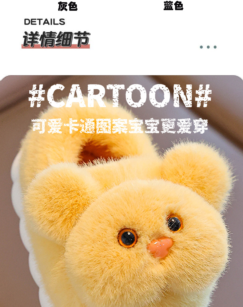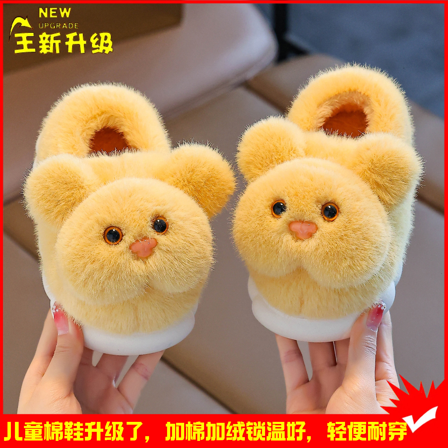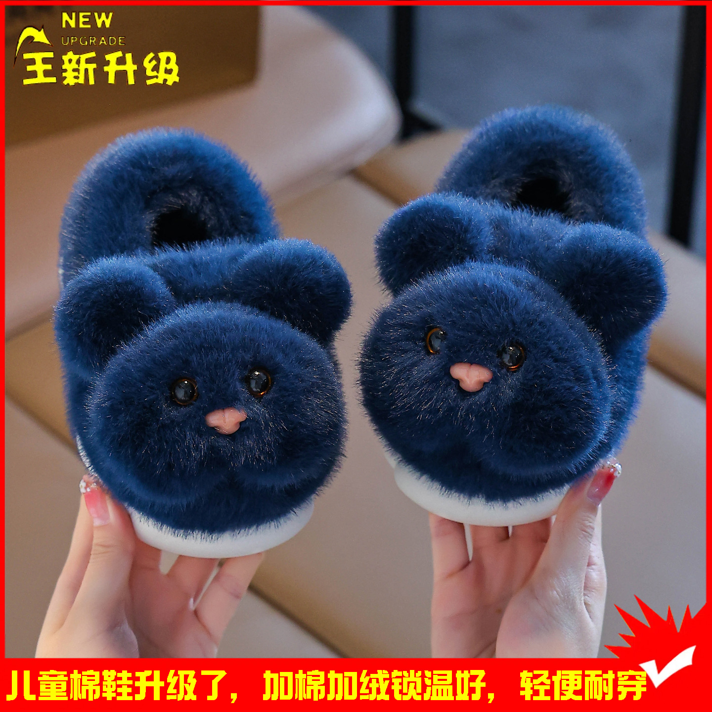 겨울철 남아 및 여아용 아동용 면 슬리퍼, 작은 어린이 및 유아용 만화 실내 및 가정용 모피 가방, 귀여운 면 신발스토어 가기