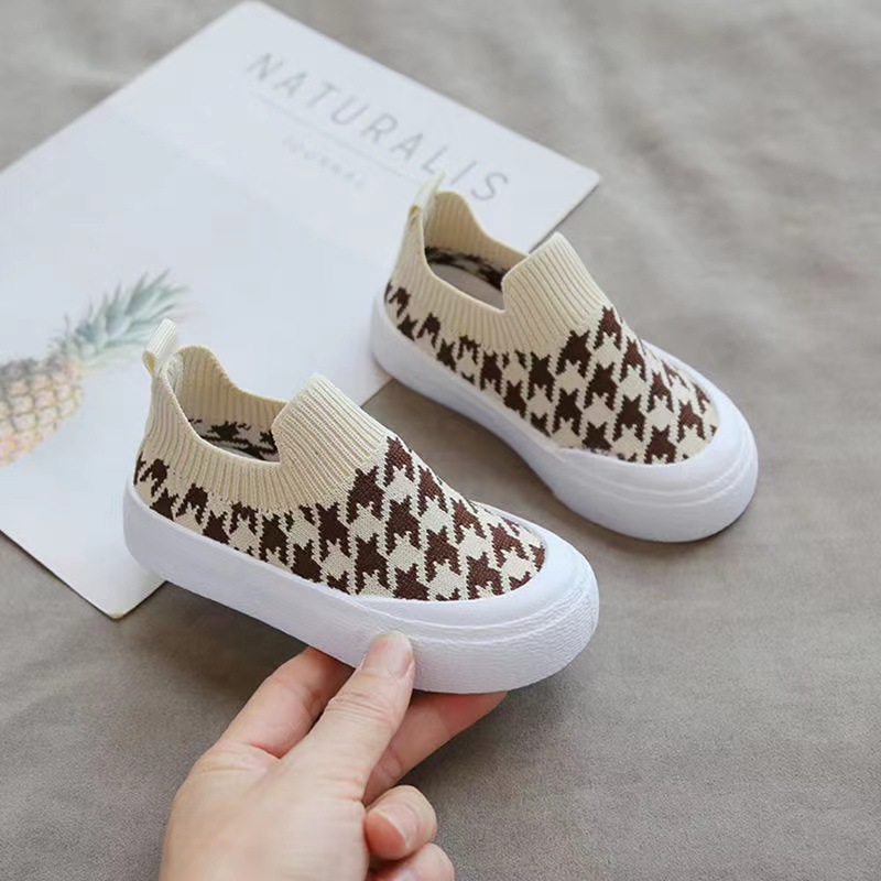 2025 봄 여름 신상 메쉬 슈즈, 어린이 신발, 슬립온, 트렌디하고 다재다능하며 통기성이 뛰어난 한국식 플라이 니트 어린이용 물떼새 격자 트렌드