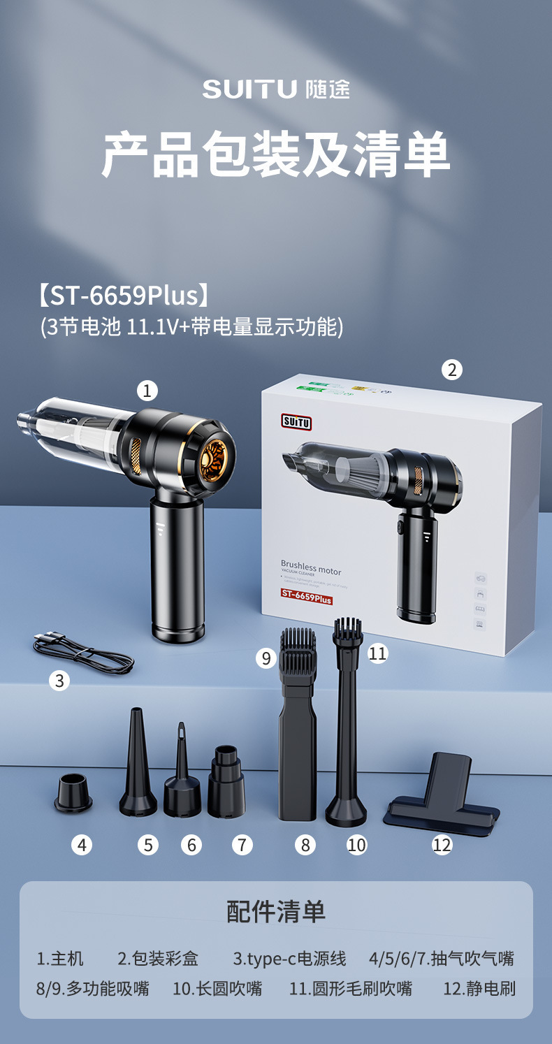 자동차 무선 진공 청소기 흡입, 부는, 충전 및 펌핑 자동차, 가정용 자동차, 이중 목적 소형 브러시리스 3 단 큰 흡입 및 고출력
